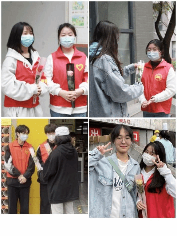 春上村树说“无论何人无论何时,人们总要在乌云周围寻索着浪漫的微光生活下去。”于是21122107团支部坚信:每个人都会拥有一份属于自己的浪漫。“手捧玫瑰,为你而来”完超活动,以情话互换玫瑰、鲜花赠予“佳人”的方式,为封闭管理下的移通学院增加一份浪漫。我们眼里的“佳人”是在封闭管理下一直坚持在岗位,为每一个班级筑起一道保护墙的辅导员老师,是默默站岗,用温柔的声音提醒每一位同学做好防护措施的志愿者,是每一位平凡而又伟大的防疫坚守者。