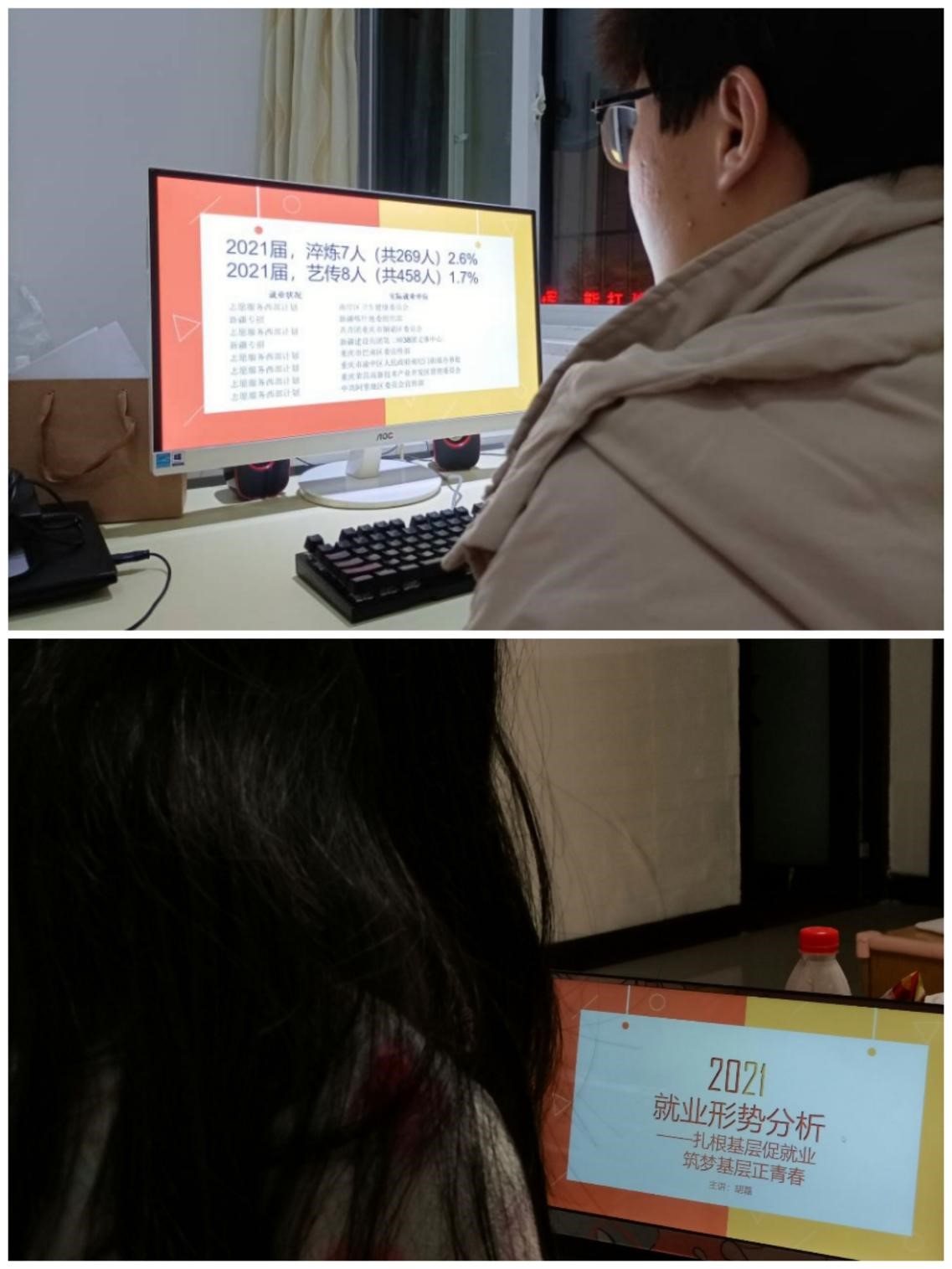 临近毕业,鼓励毕业大学生到基层就业也是一个促进大学生就业的有力途径,把大学生吸引到基层,让高校毕业生熟悉当代中国社会、了解现阶段国情、磨炼意志、砥砺品格、促进健康成长的重要作用,提高基层人才队伍素质,构建社会主义和谐社会具有重要的推动作用。然而面对基层服务项目,同学们了解尚浅。就此问题,艺术传媒学院2018级动画、数字媒体艺术专业及专升本共11个班,于12月19日举办主题为“扎根基层促就业,筑梦基层正青春”就业形势分析报告会,本次年级会通过线上方式举办,全体学生参与,会议由辅导员胡磊老师主持,艺术传媒学院李轶天院长为同学们做就业形势分析报告。