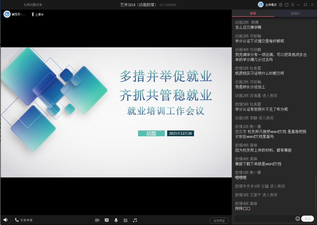 梅月吐幽香,为提升同学们就业知识、增强就业能力,引导学生互帮互助,2021年12月26日20:00,2018级数字媒体艺术和动画专业以线上会议的方式举办了以“多措并举促就业,齐抓共管稳就业”为主题的年级会。通过“讲授+答疑”的形式帮助同学们辨认误区、走出盲区,在就业实习的大潮中为同学们保驾护航。