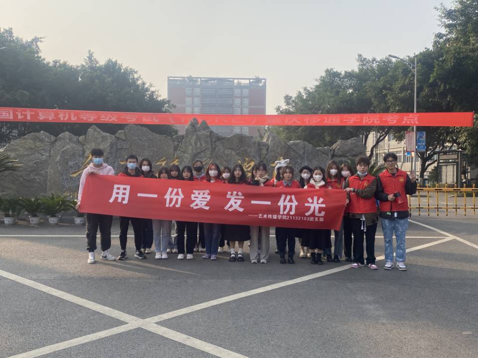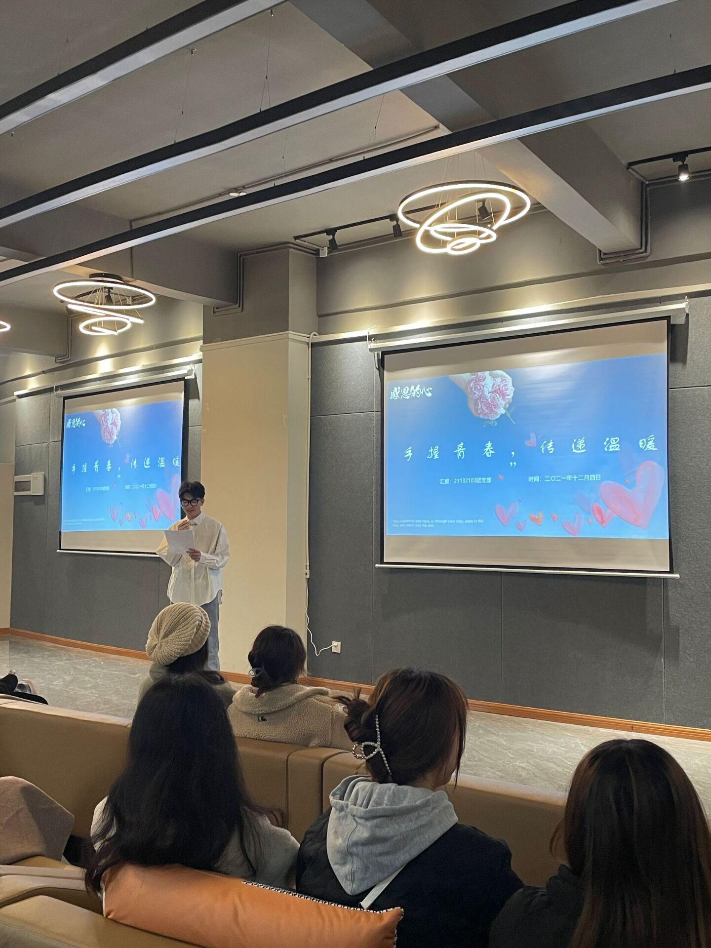 落红不是无情物,化作春泥更护花。表达对他人的感恩与关爱,能让我们的快乐感和幸福感更上一层楼,如锦上添花。为进一步弘扬新时代志愿服务新风,传递服务理念,践行社会主义核心价值观,在2021年12月4日-12月5日,重庆移通学院艺术传媒学院数字媒体艺术三班的同学们举办了“手握青春,传递温暖”的完超活动。活动使同学们了解志愿服务,不断提升自身的社会责任感和实践能力。培养同学们形成“关爱他人、无私奉献、立志成才”的作风。