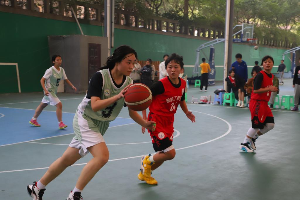 12点15分,哨声响起,比赛正式开始。以艺传院队77号开球,面对智工院队的层层阻拦,77号艰难地将球传给艺传院队5号,但未能投中。智工院队赢得首球,艺传院队迅速调整心态。智工院队犯规,艺传院队获得罚球的机会,艺传77号精准投进两球,全场观众为她欢呼鼓掌。球场中双方你追我赶,进攻,防守不断演变。第一回合在热闹的氛围中结束,艺传院队暂时落后。