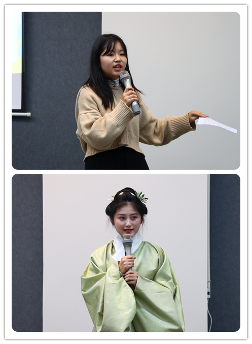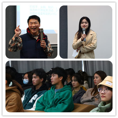 在艺术修养中练就一双欣赏美的眼睛,在志愿服务中感受小我大我之责任,在社团活动中开阔视野,在竞技体育中磨炼意志,在书院的浸润下感受家文化的温馨……“完满进行时”环节,同学们以完满教育“四个板块+书院”五个方面进行解读分享。艺术修养板块由1-8班的才艺担当为大家带来的《歌曲串烧》,同学们在音乐中寻找着艺术的魅力与快乐,大家跟随音乐一同哼唱,唱出对美好学习生活的希冀;志愿服务板块由志愿达人廖晨熙同学分享志愿里的完满故事,激励同学们投身志愿服务以微光照亮世界,另外,完满超级团支部代表广编6班与同学分享班级团队制作的学校完满教育爱心公益宣传片;竞技体育板块由3班杨尔聪同学通过幽默的脱口秀方式在轻松愉快的同时,让同学们感受体育精神;社团板块由新生杯辩论赛最佳辩手4班刘伯柃同学分享辩论的故事与成长,2班程晨同学身着宋代汉服,讲解汉服常识让传统文化熠熠生辉;书院板块由北山书院罗雅心、南湖书院杨焦驹代表书院新人发言,分享两个月书院生活的温馨瞬间,同时,5班左天娇同学原创书院小游戏“书院里面有什么”,增强同学们对书院的认识及文化认同感。
