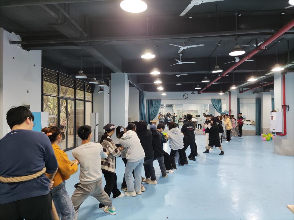 进一步相互熟悉后,大家进行了拔河比赛,两位主席牵头,分别挑选了自己的队员。大家“摩拳擦掌”,紧紧握住粗绳,随着一声令下,大家迅速往自己身后倒,每个人都使出浑身解数,都使劲儿想把绳子往己方拉,双方势均力敌,绳结摇摆不定,比赛氛围一度高涨,但杨露主席方的小伙伴们明显耐力更好,最终取得胜利并获得奖励。大家虽然脸涨得通红,却都洋溢着笑容。