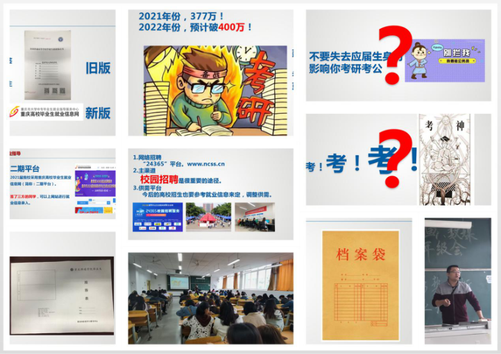 会议的第二项内容,是通过就业指导来给同学们讲解就业的新政策、新改变和新知识,并通过概念解释、案例分析和操作演示让同学的困惑现场得以解决。这其中包括了如何辨别公司的真伪;可靠的求职网站;校园招聘和网络招聘的不同及注意细节;何谓应届生的身份;什么是劳动合同、三方协议、推荐表;核对生源信息和档案去向等方面。尤其重点强调了今年对于三方协议发生的改变——电子三方协议的解答。这些问题看似简单,但是如果没有权威的解释,学生很容易听信网上的传言,这对于大四学生显得格外重要。