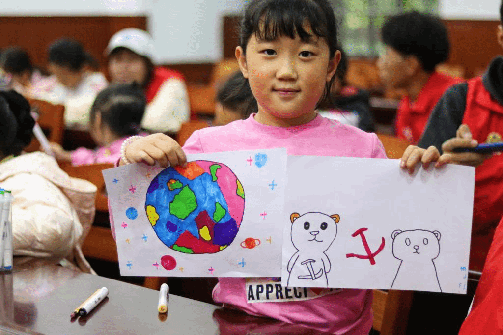 小朋友们目不转睛地盯着白板上写的几个大字,对这次以“敬老节”为主题的课程十分感兴趣,志愿者小老师从最初的传统文化入手,向小朋友们讲述敬老节的由来与发展,并着重告诉了大家为什么要敬老爱老,小朋友们听得也是十分认真。互动环节,大家自由发言,有小朋友流利地背诵出了《九月九日忆山东兄弟》,也有的小朋友说出了“关爱老人”和“登高赏月”等字眼,大家各抒己见,现场气氛很是活跃。随后志愿者穿梭在小朋友中间,指导他们画画,画出自己心目中的重阳节,在绘画过程中,不时有小朋友问志愿者,这个怎么画?我上什么颜色更好呢?……志愿者都耐心地指导小朋友们,帮助他们完成画作。