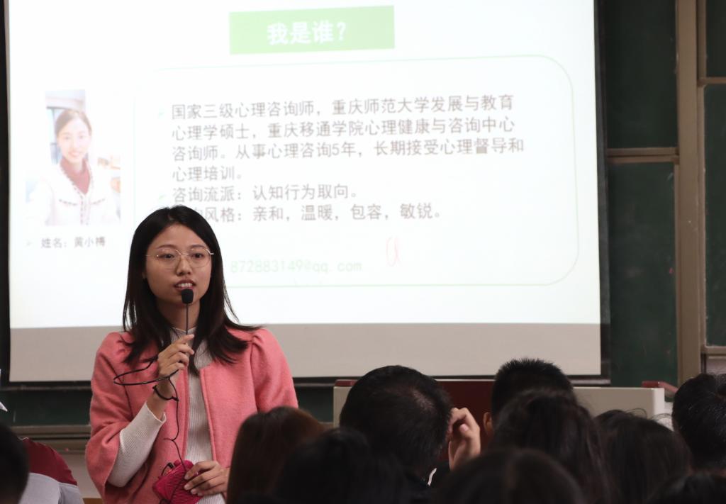 为促进我院新生更好地调动自身的积极情绪,掌握人际交往的技巧,探寻自我的价值与意义,更好地帮助大学新生积极适应和融入大学生活,艺术传媒学院于10月15日中午12:30邀请到重庆移通学院心理教育与咨询中心黄小梅老师在7307教室开展“积极心理学与大学生活适应”专题讲座。