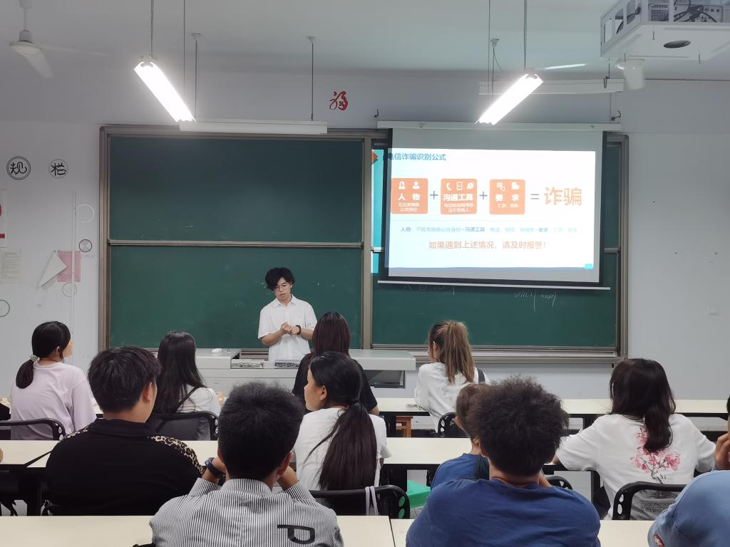 近年来,随着通讯技术的发展及多样化,电信诈骗手段和形式也开始呈现出多样化趋势,许多在校大学生由于缺乏相关知识而跌入陷阱、蒙受损失。对此,我校高度重视同学们的生活及财产安全,号召同学们提高防范意识。为提高同学们的防范意识,我院生活权益部策划并开展了此次新生防诈骗主题宣讲会。9月27日,由艺术传媒学院生活权益部召开的“预防电信诈骗小知识”宣讲会在第八教学楼二楼成功举办。