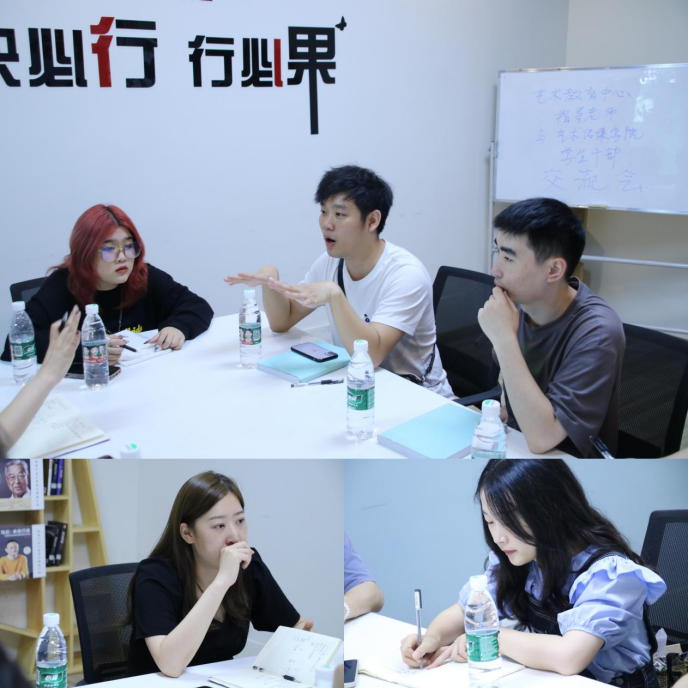 参加本次交流会的人员有艺术教育中心指导老师陈建辉和侯宇卓、艺术传媒学院艺术版块指导老师安珈璇、光影艺术团学生干部和主席及繁星训练营同学组成。本次交流会主要由安老师介绍并梳理汇报本学年艺术方向的主要工作安排,针对专项问题陈老师和侯老师给出专业的指导意见。大家集思广益,畅所欲言,会议在轻松有序的氛围中进行。