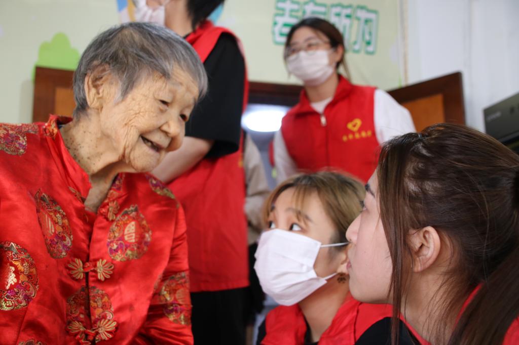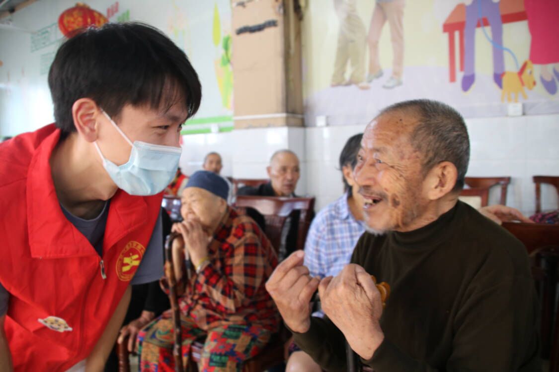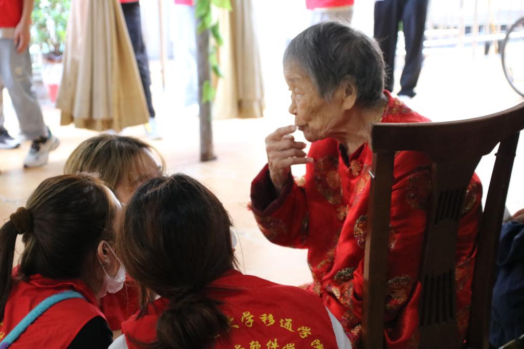 志愿者们到达颐养中心后,分工明确,很快就将平台搭建完成,及时安排了老人们有序入座,台上的志愿者们准备着,台下的志愿者们分别蹲在老人们的一旁,拉着他们的手,和他们唠唠家常,听听老一辈以前的故事。