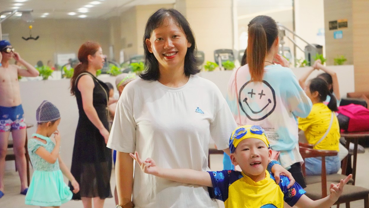 作为一个志愿者,第一次接触到自闭症儿童们,完全看不出他们与正常孩子们的区别。他们有开心的笑脸也有害怕的胆怯,在进入泳池后,有的孩子在教练的带领下很快就能在泳池自由的玩耍甚至可以在泳池里游一圈那么长。而第一次接触泳池的孩子即使害怕,哭泣,也在父母的陪伴与鼓励下逐渐勇敢了起来。接触了一段时间之后,你才能渐渐看出他们与其他孩子的区别 ,在与他们对话时,他不会对你的问题给出反应,而严重的孩子会对一件事情格外执拗。但是令我惊讶的是,我与其中一个孩子交流时,他虽然喜欢跟我恶作剧,但特别可爱的是他让妈妈坐下休息。他才几岁,却比很多孩子都要懂事些。活动结束后,很多妈妈都来找我给她们和孩子拍一个合照,孩子游泳的时候也会不断的拍视频,拍照,记录下这个珍贵的瞬间。其中有个孩子是由爸爸带着的,大多数孩子都是妈妈陪伴,很少看见爸爸来带孩子的,但是他却比所有妈妈都要温柔有耐心,而且在闲暇的时候会和妈妈们交流经验,妈妈们都在安慰鼓励他。我觉得,虽然自闭症儿童与其他孩子不一样,但是父母给予他们的爱是相同的。我希望在未来,他们能够变得越来越好。我们也会继续为闪烁的“星星”孩子护航。