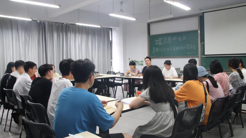 6月30日下午在“三下乡”社会实践开展前夕,为响应国家的号召,践行我们青年一代“负责任,能担当”的使命,重庆移通学院艺术传媒学院“卫星”志愿服务团在8208教室召开“三下乡”暑期社会实践活动筹备会。学工副院长、“三下乡”社会实践指导老师李克伟老师,志愿服务板块指导老师许静老师,社工教授成员,与全体志愿者成员围绕此次“三下乡”暑期社会实践中的具体行程安排、工作分工、人员安全等实践中的大小相关事宜进行详细讨论与部署。