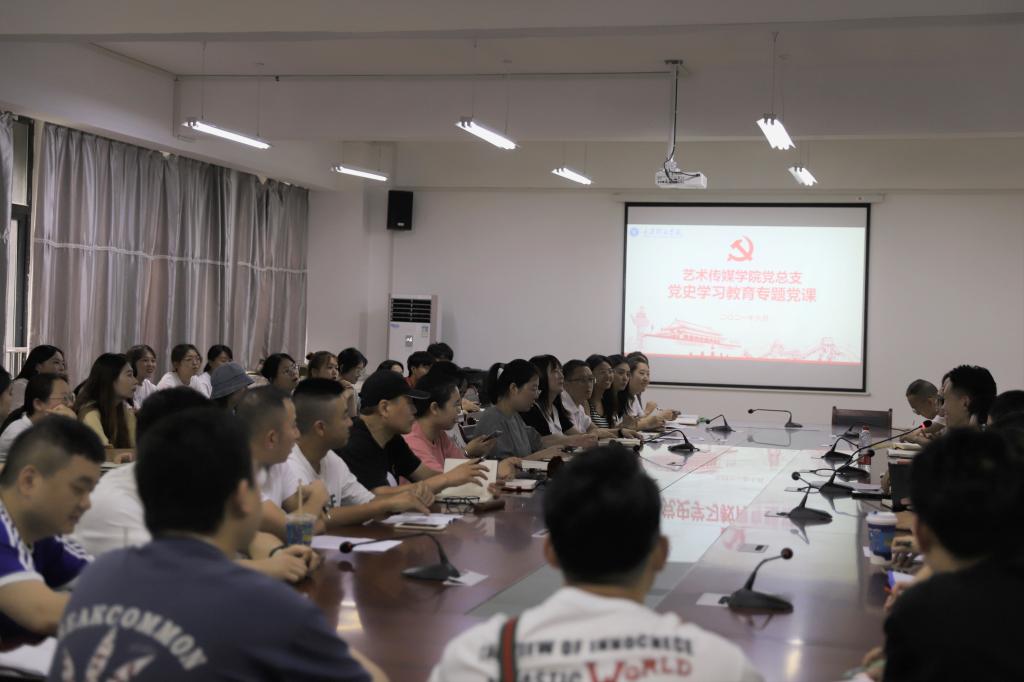 为贯彻落实中共中央关于党史学习教育的文件精神,继承与发扬中国共产党的历史经验与优良传统,进一步坚定全体师生党员的理想信念,艺术传媒学院党总支于2021年6月23日在8101会议室开展党史学习教育专题党课。艺术传媒学院党总支书记李轶天、党总支副书记李克伟分别为师生党员上党课,艺术传媒学院全体师生党员参会。