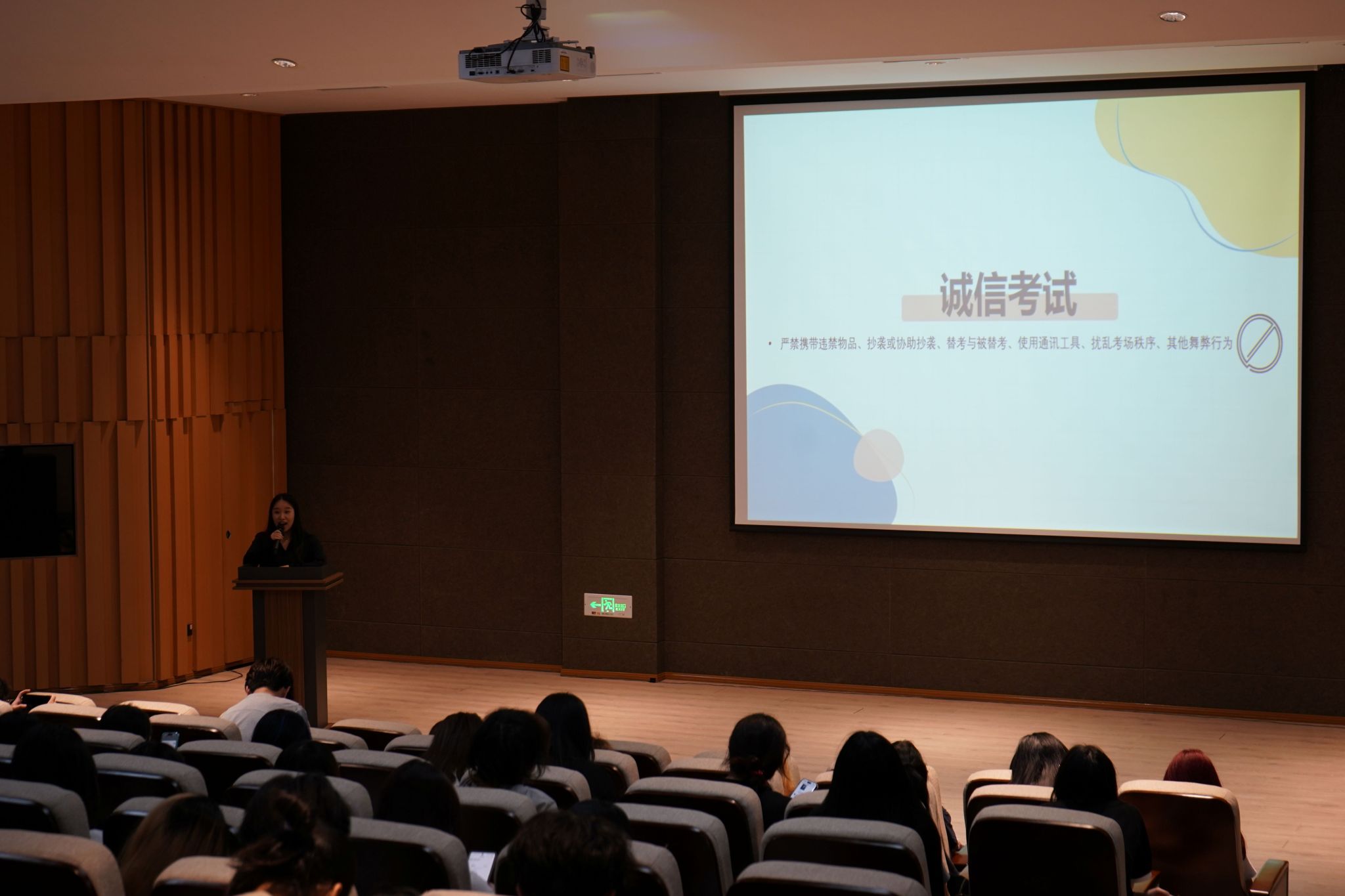 2022 级辅导员许静老师开展“诚信为本 扬帆应考” 年级会。许老师立结合相关法规与校规,阐释考试舞弊的严重后果,呼吁同学们将纪律约束内化为自律行为。胡磊老师强调期末考试和毕业、就业的链接关系,呼吁同学们做好考试复习,迎接期末考试。