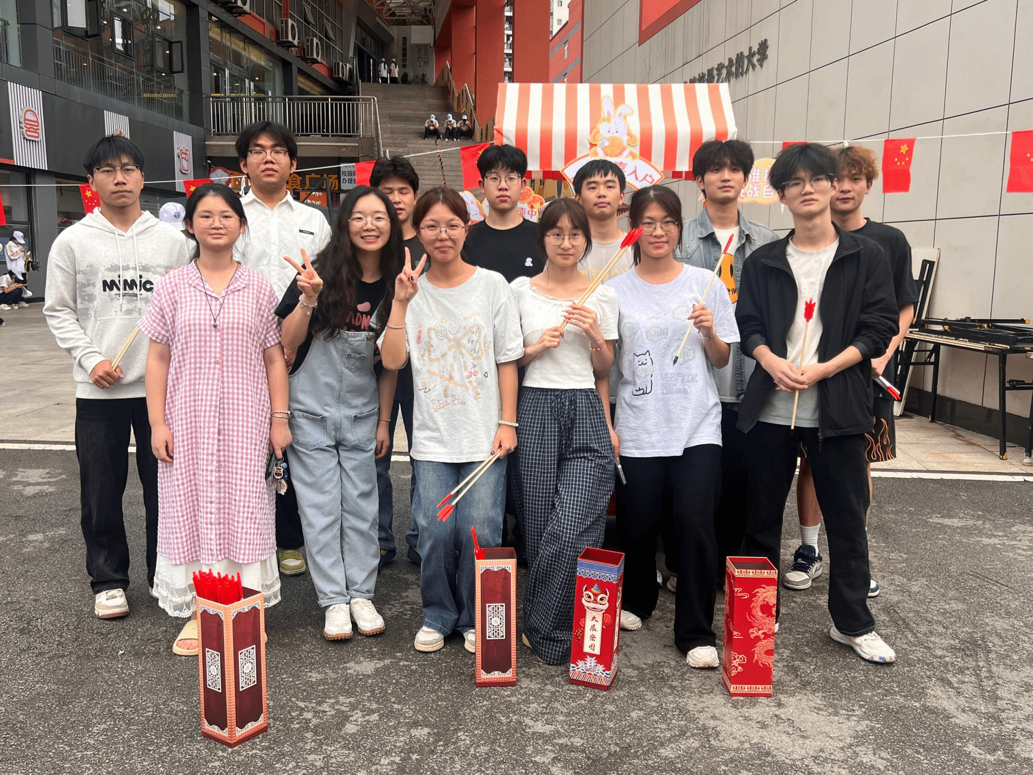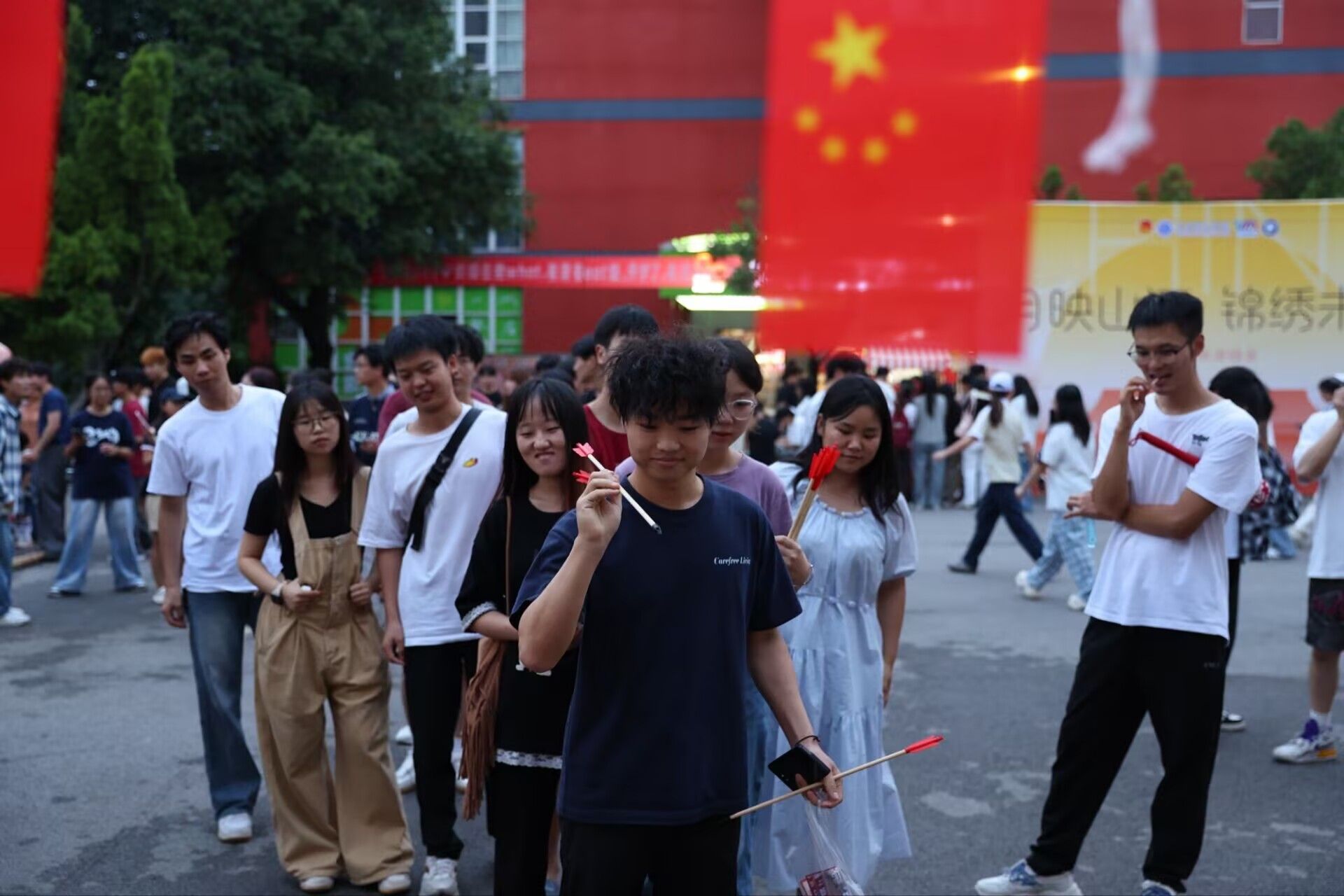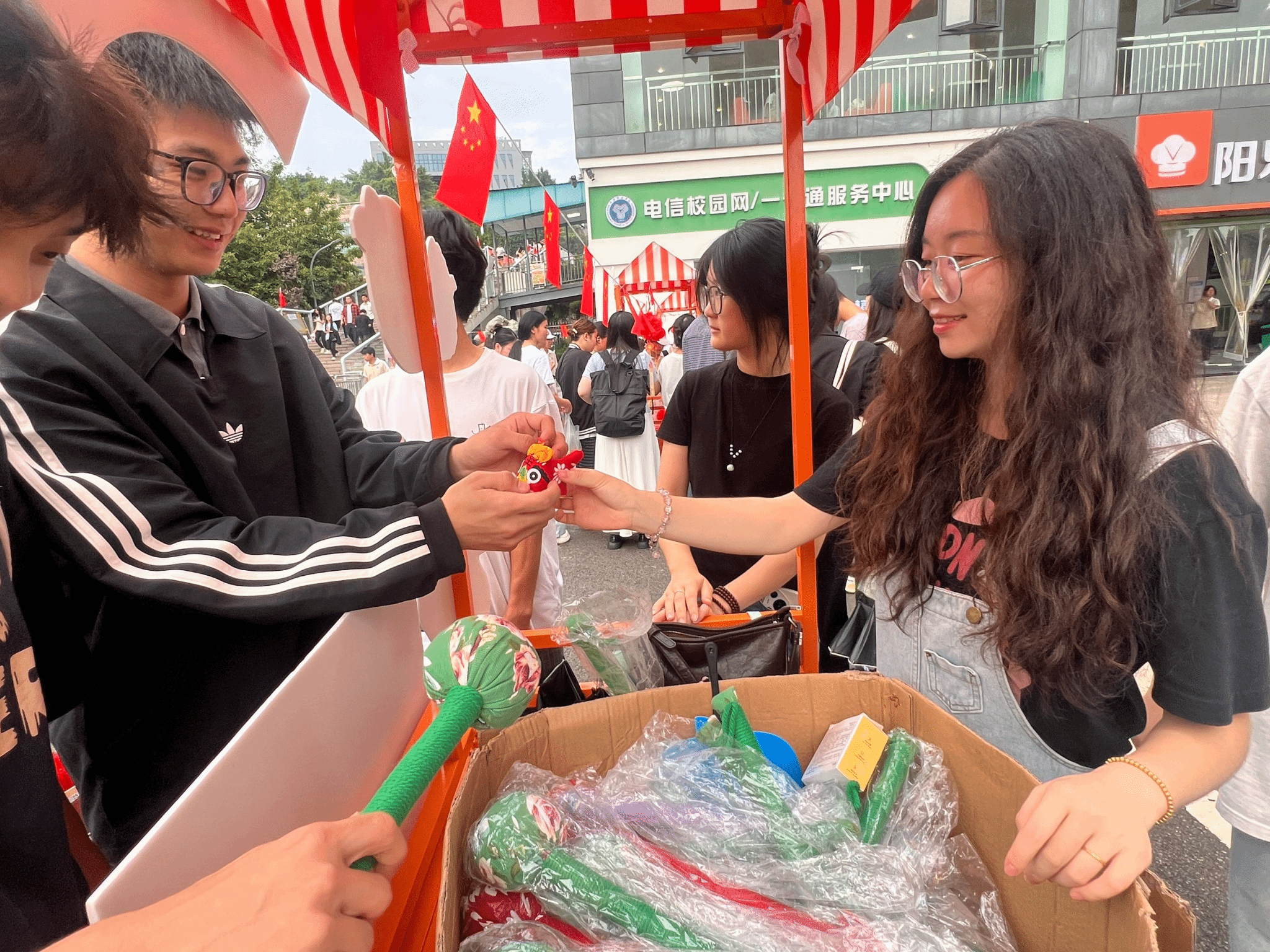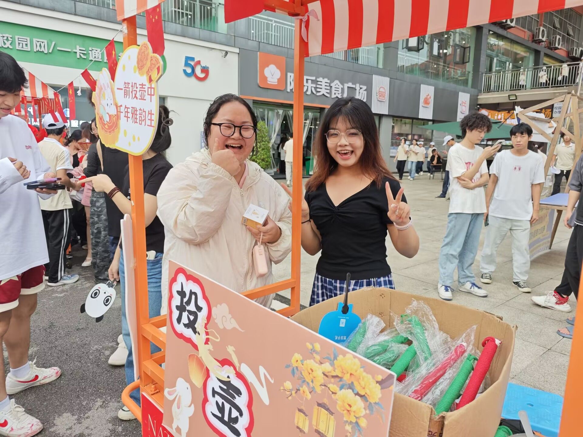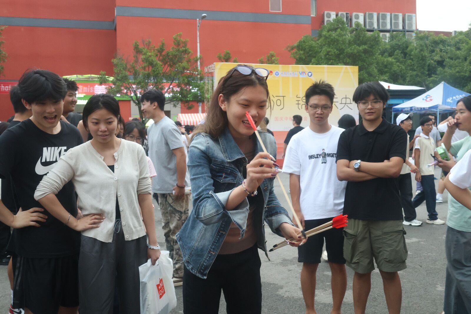 当夜色渐深,投壶活动的热度依旧未减,排队的身影、欢快的笑声与古朴的壶影在灯光下交织成一幅生动的校园双节画卷。参与活动的2024级学生李同学笑着说:“以前只在电视剧里见过投壶,这次亲手体验才知道有多有趣,赢到的艾草锤每天用它捶肩,感觉把节日的快乐也带回了日常。”