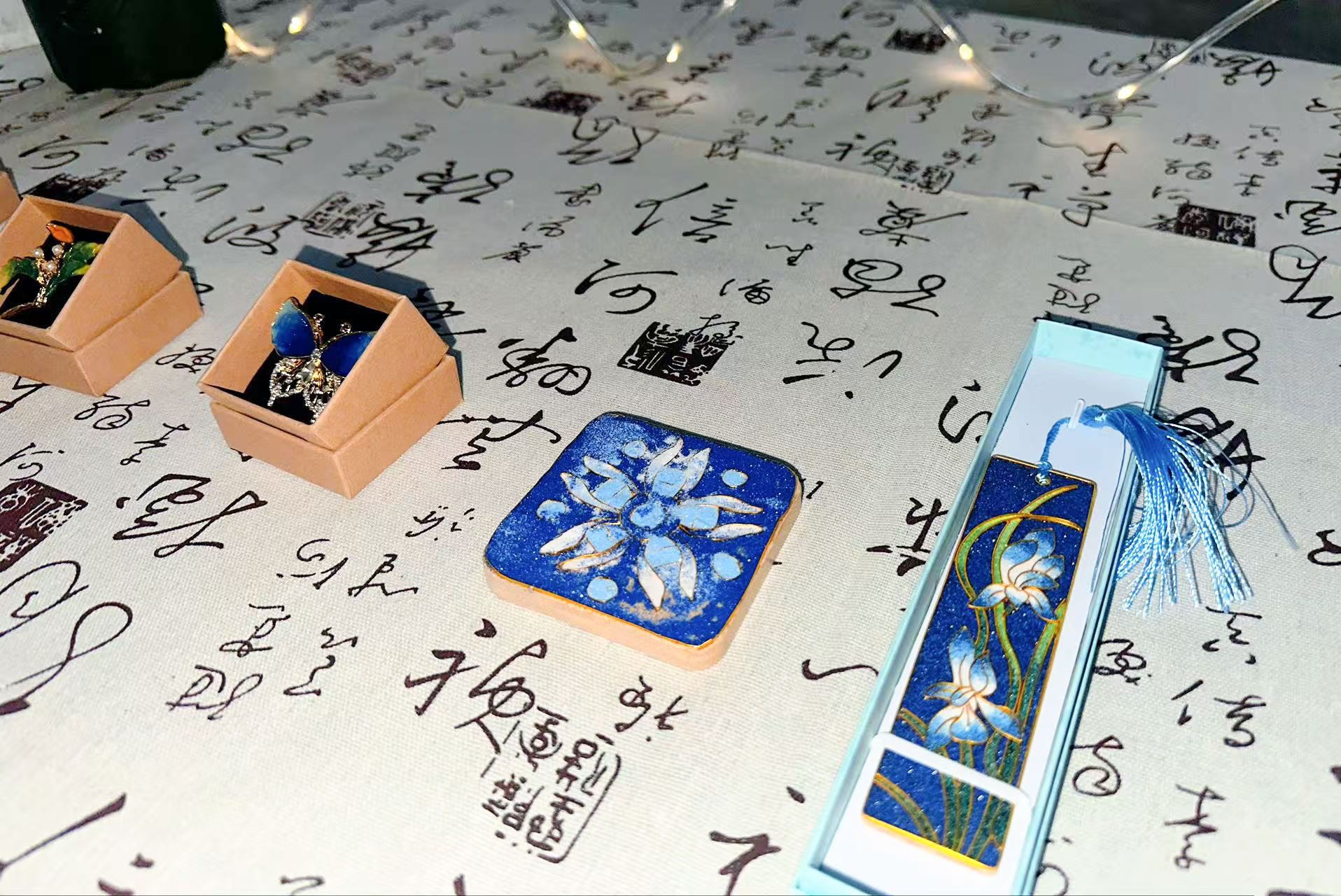 掐丝珐琅,又称“景泰蓝”,其历史可追溯至元代。这项技艺以铜为胎,将铜丝按照设计纹样掐制成型并粘于胎体,再填入不同颜色的矿物,经多道工序,最终形成色泽艳丽、质感厚重的艺术品。因其复杂的工序和精美的成品,被列入国家级非物质文化遗产名录。而如今,AI技术的介入为这门古老工艺注入新活力,通过算法分析传统纹样,快速生成符合珐琅工艺特点的画稿,让传统美学与现代科技实现深度融合。