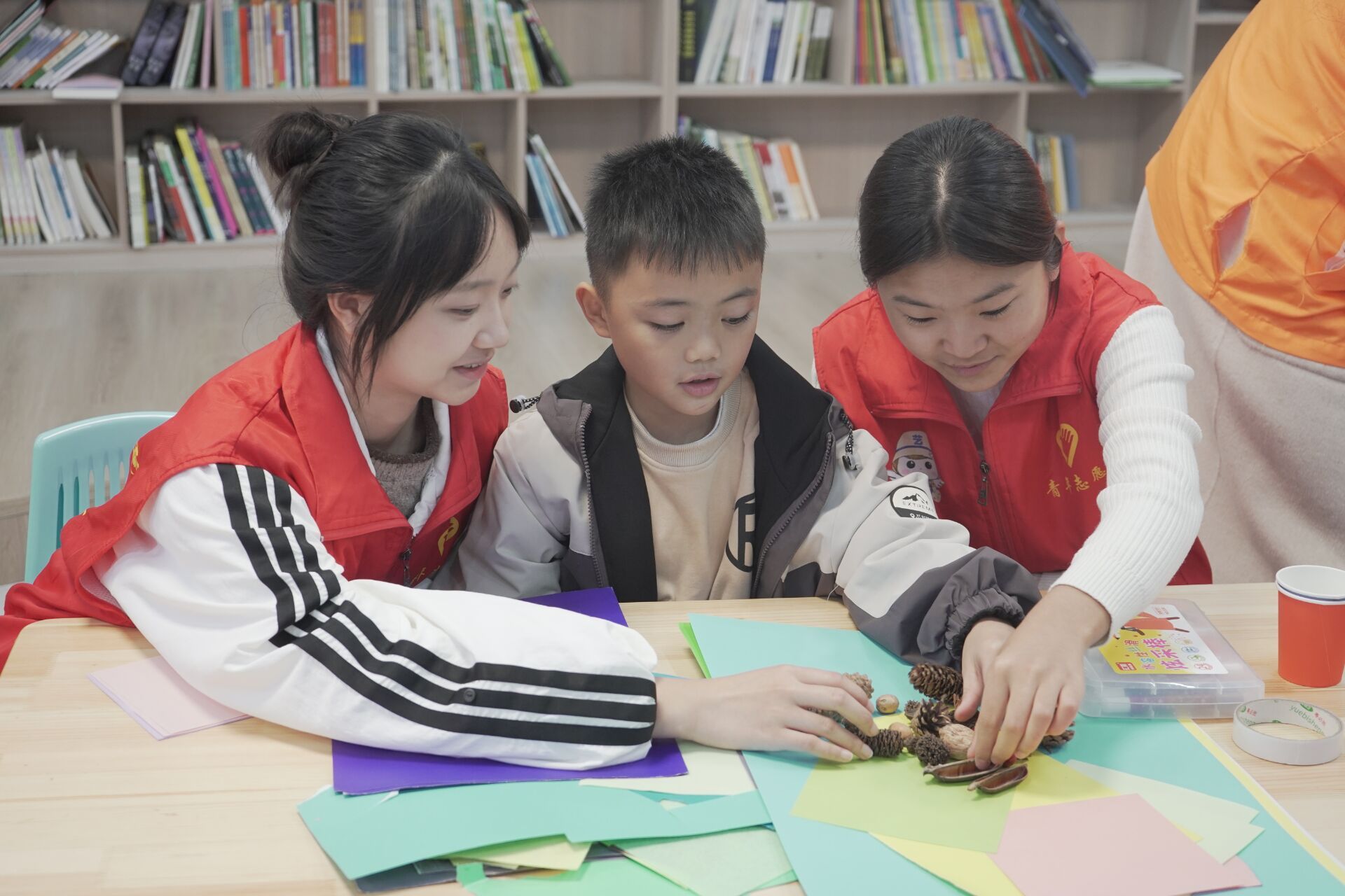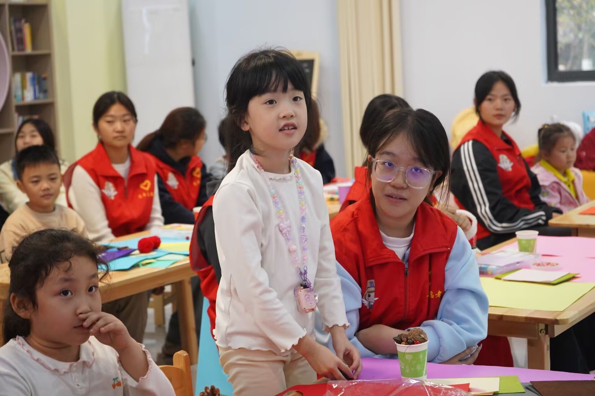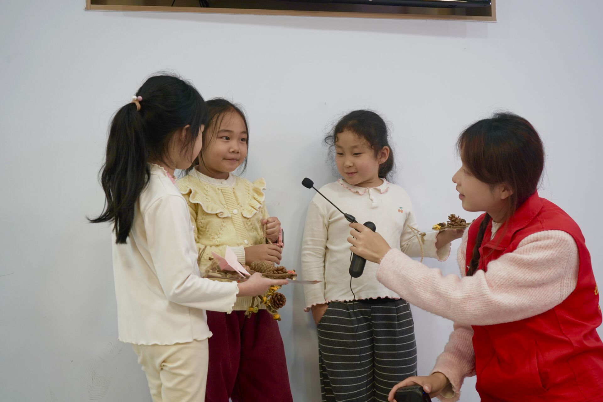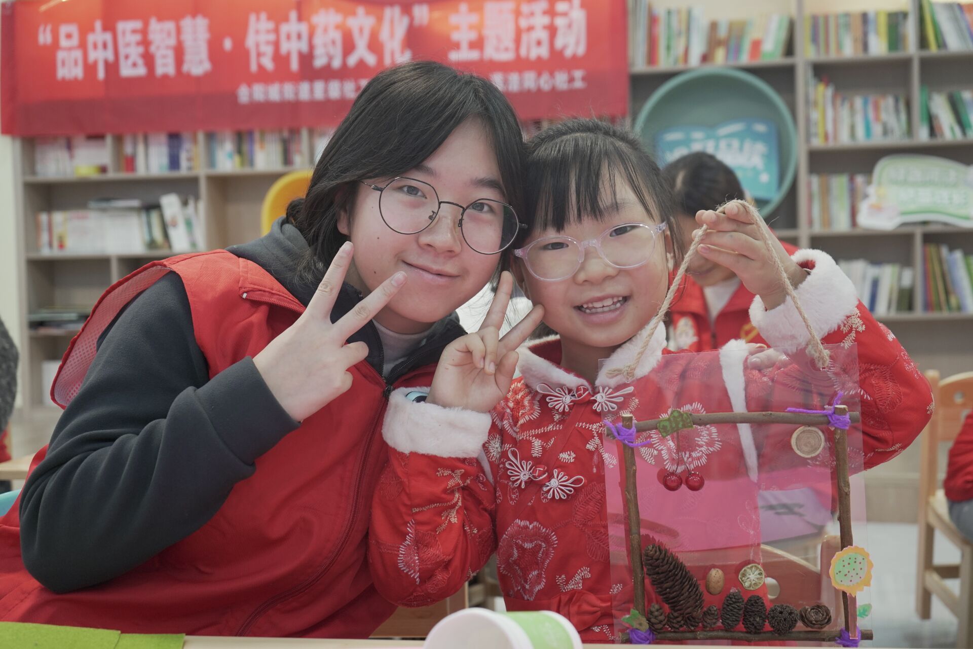 课堂互动启智慧,巧手实践悟传承。在手工实践环节,志愿者首先向小朋友展示了制作精美的示范作品,简要讲解制作要领后,便分组指导孩子们动手操作。孩子们在志愿者耐心细致的指导下,认真挑选药材、仔细拼接材料,每个步骤都完成得一丝不苟。现场氛围专注而温馨,孩子们在亲手实践中加深了对中药材的认知。随后的作品展示环节,孩子们自信地举起亲手制作的手工品,向大家分享自己的成品。他们用稚嫩而真诚的语言讲述着对自己成品的制作过程,每个作品都展现了独特的童趣创意。志愿者为每位小朋友送上纪念奖品,孩子们脸上洋溢着快乐的笑容。
