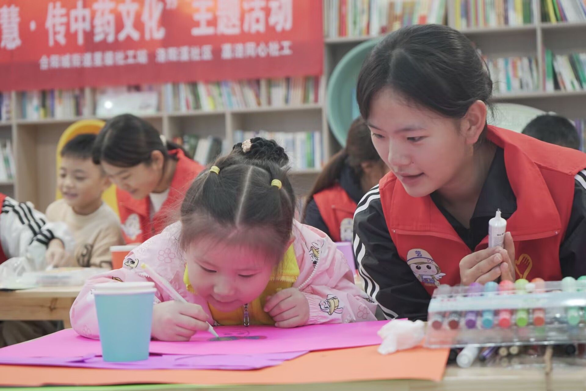 动静相宜承古韵,知行合一润童心。在活动尾声,志愿者们带领小朋友们练习八段锦功法。伴随着舒缓的动作,孩子们认真学习每个招式,在亲身实践中感受中医药文化的智慧。现场工作人员用镜头记录下孩子们专注练习的珍贵画面,定格这段有意义的学习时光。本次活动让小朋友们在动手制作中,增进了对中医药文化的认识。志愿者们也在活动组织中深化了对中医药文化的理解,提升了实践能力。相信这次经历将在孩子们心中播下中医药文化的种子,让这一宝贵遗产在新时代焕发新的生机。