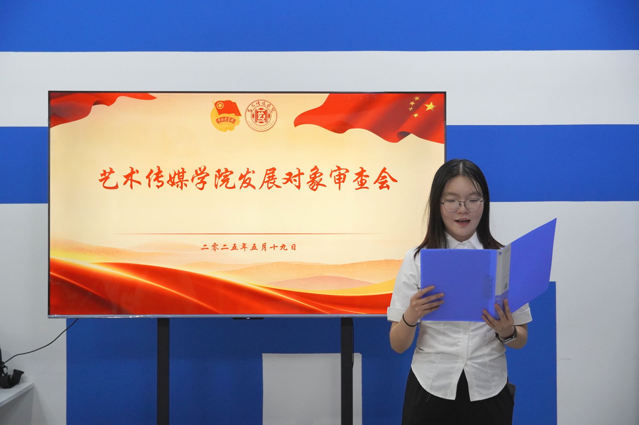 为深入贯彻新时代党的建设总要求,全面落实发展党员工作部署,保证党员发展质量,保持党的先进性和纯洁性,进一步壮大党员队伍、增强党的生机活力,5月19日,艺术传媒学院学生第一、第二党支部于天空书院青空朋辈畅谈室组织召开2025年春季发展对象审查会。本次会议由张雯婷同志主持,全体支委会成员、辅导员以及发展对象参加会议。