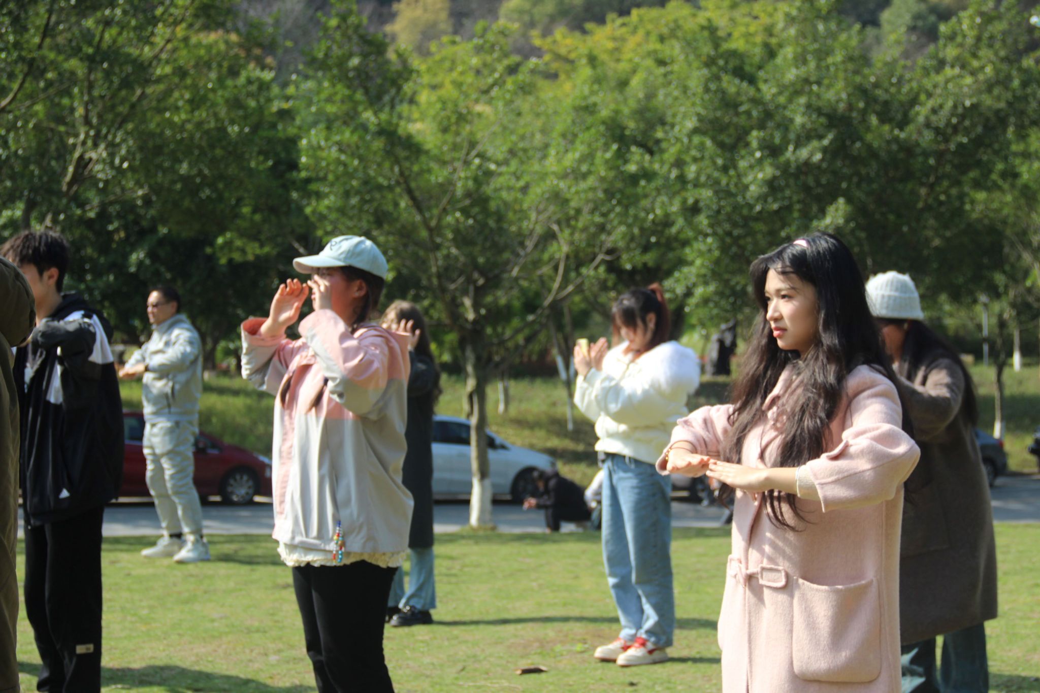 午后的阳光中,三十余名同学们随导师的指引缓缓起势。抬手如揽月,转身似拂云,八段锦的一招一式在阳光中舒展成流动的画卷。“原以为这是‘老年运动’,没想到练完神清气爽!