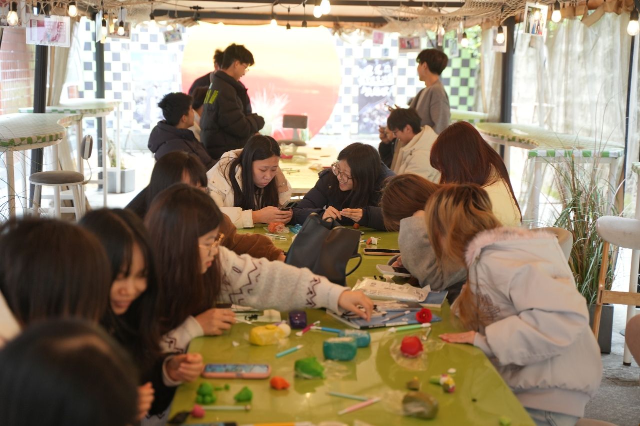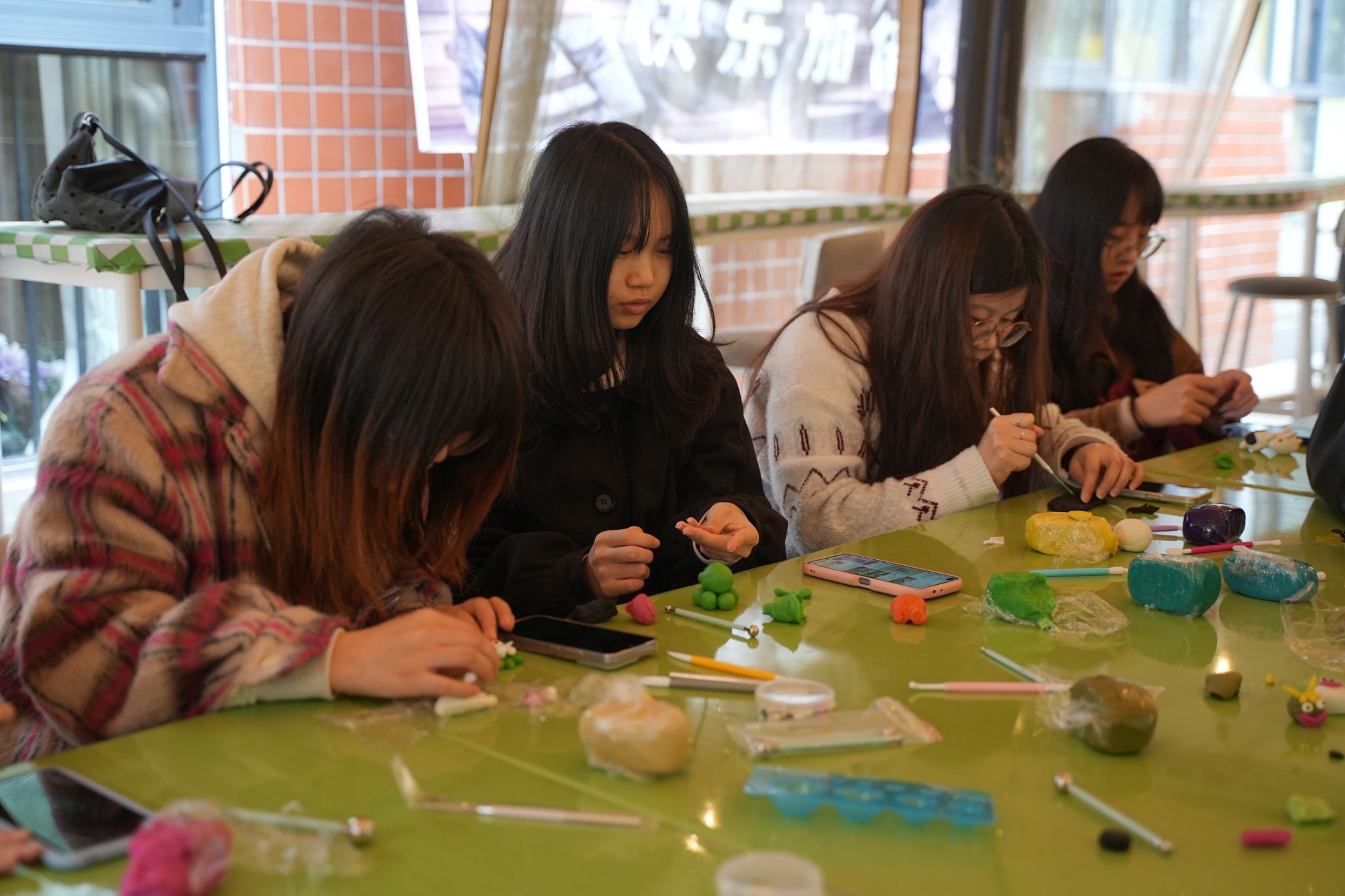 在主持人的引导下活动正式开始,现场气氛迅速升温,同学们一个个纷纷化身成为“手艺人”沉浸在自己的创造世界中,每一次对面团的揉捏都体现了同学们日常生活中的坚持。随着时间的流逝,大家都渐入佳境。面团由最开始的长方体变成了一个个活灵活现的小物件。