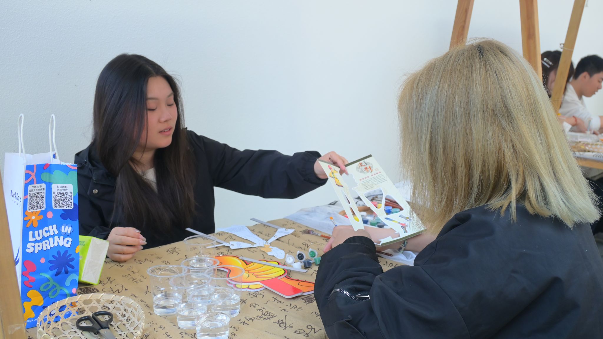 盲盒探秘,非遗传承。中原文化区凭借盲盒加体验的新颖模式吸引众人。这里设有投壶雅射、古法合香、麦秆织画、金陵绒花、皮影工坊等六个非遗摊位。参与者需通过闯关集印解锁盲盒,盒内非遗材料包可用于制作地域非遗手工,还有隐藏款惊喜。