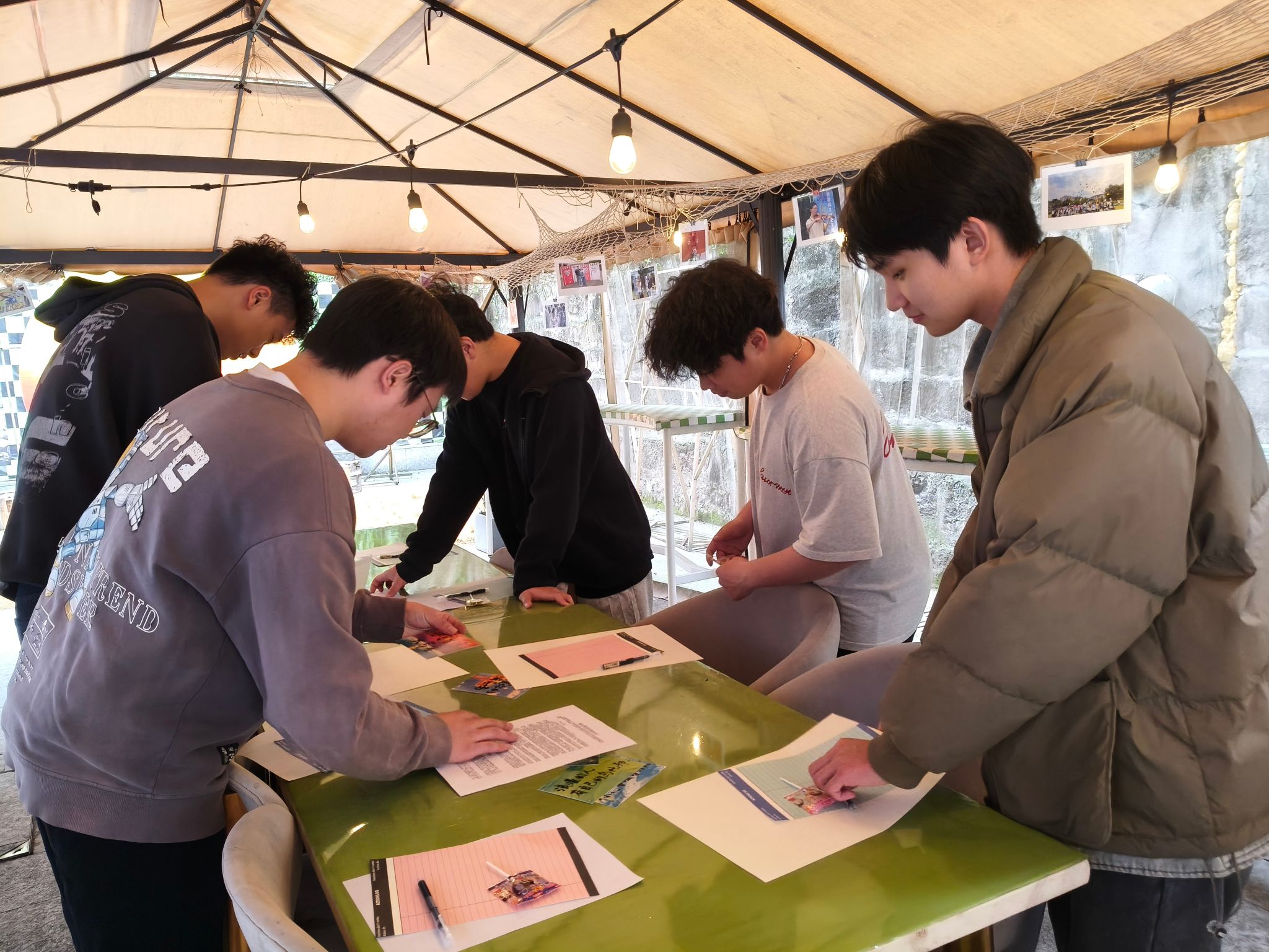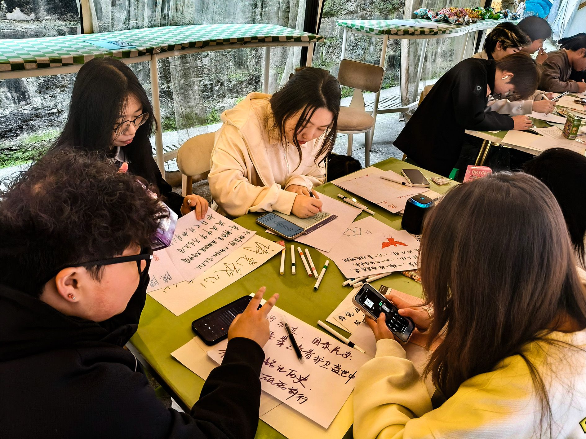 为了增强同学们对党和学校的热爱,提升同学们对党和完满教育的认识,2025年3月21日艺术传媒学院2023级网络与新媒体5班团支部在鱼城书院山海后街举办了“筑梦校园,创意同行”完满超级团支部活动。同学们用纸笔书写着对校园和党的热爱,通过展现学生们的创意与写作能力诠释完满教育理念。