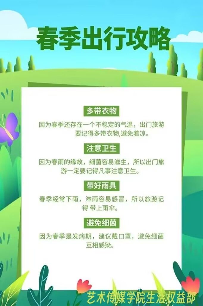 生活权益部在这里提醒你,收下这份指南,让安全与你同行。愿你在这个春天里,玩得尽兴,乐得开怀,健康平安!