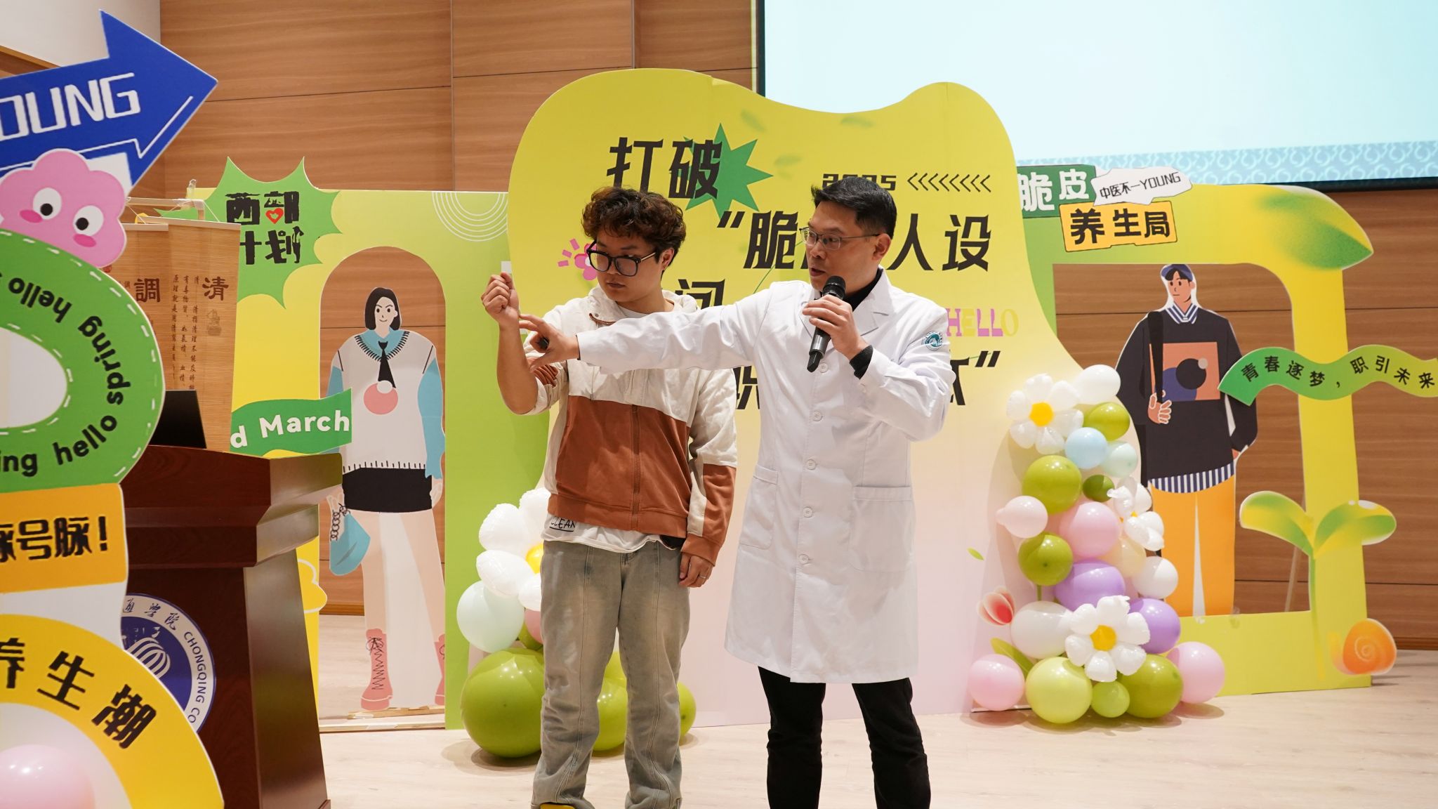 穴通经络,医道传承。为普及中医知识,培养师生们健康生活习惯,助力疾病防治,激发对传统文化的热爱,增强文化自信。重庆移通学院艺术传媒学院青年志愿者协会邀请到邓仁龙医生前来宣讲。本次宣讲活动主要从纠正不良习惯和穴位按摩缓解两方面展开,进一步营造健康生活的校园氛围。