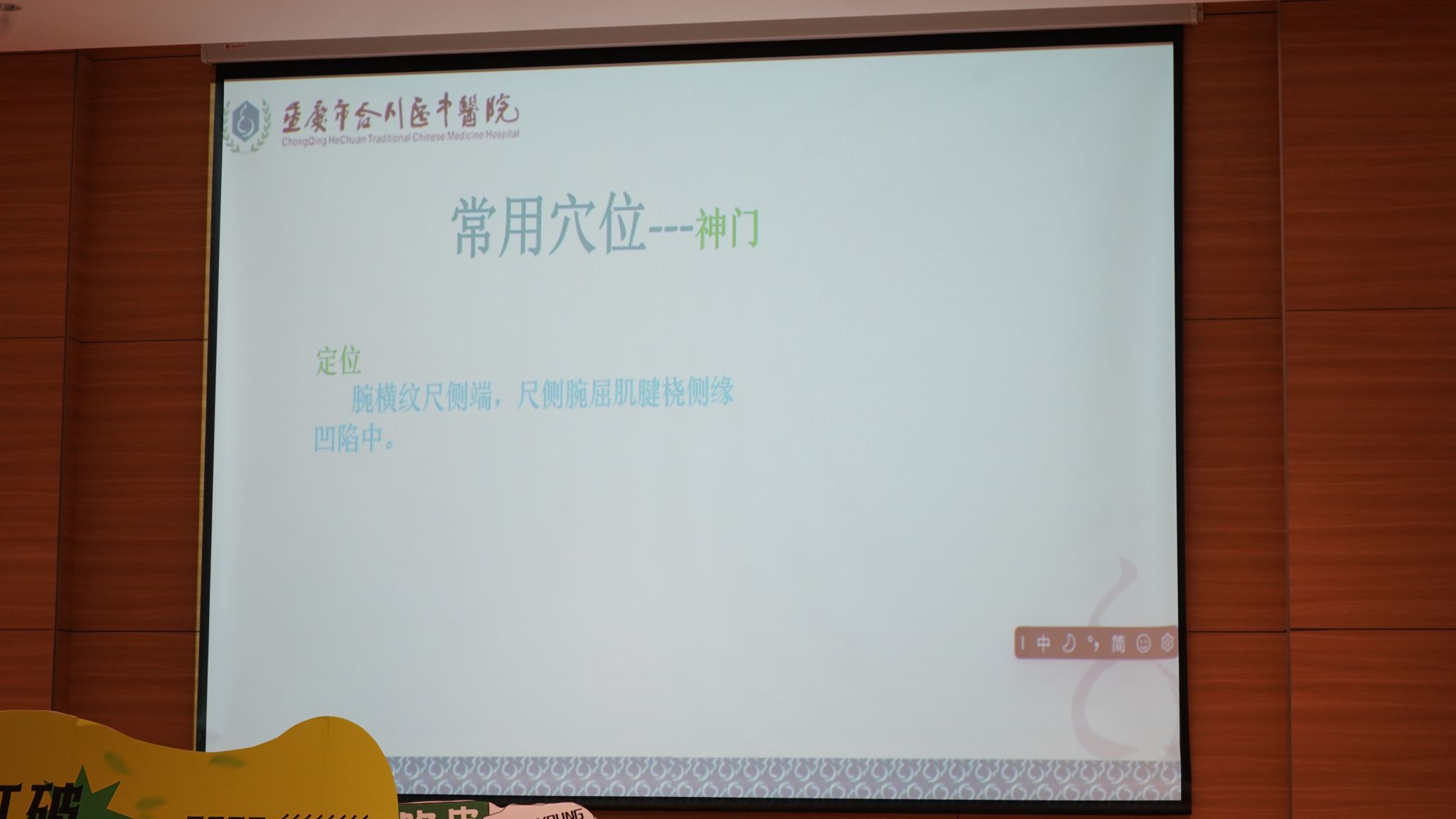 穴藏乾坤,医道讲堂。邓主任深入讲解神门穴。神门穴是手少阴心经的原穴,处于腕前区,腕掌侧远端横纹尺侧端,尺侧腕屈肌腱的桡侧凹陷处。邓主任还特别提醒大家,按摩神门穴时手法要轻柔,睡前进行效果更佳。找到穴位,轻轻按压后,大家纷纷表示对穴位按摩的认可。在讲解过程中,邓主任结合现代生活方式,分析了人们因长期精神压力大、作息不规律、饮食不健康等问题导致的身体不适与内关穴、神门穴的关联,让师生们深刻认识到穴位养生在日常生活中的重要性。