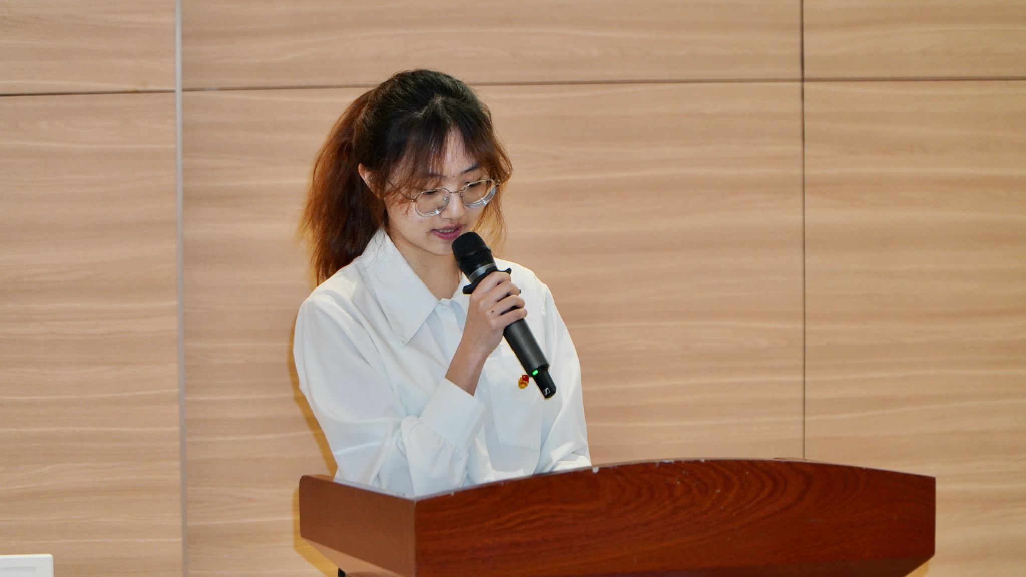 摆正身份,砥砺前行。最后,她指出我们作为新时代的新青年人,应当用实际行动诠释了“五四精神”,展现了中国青年的担当和使命。 “青春须早为,岂能长少年。”用青春和汗水书写属于我们的时代华章,让五四精神在新时代绽放更加耀眼的光芒。