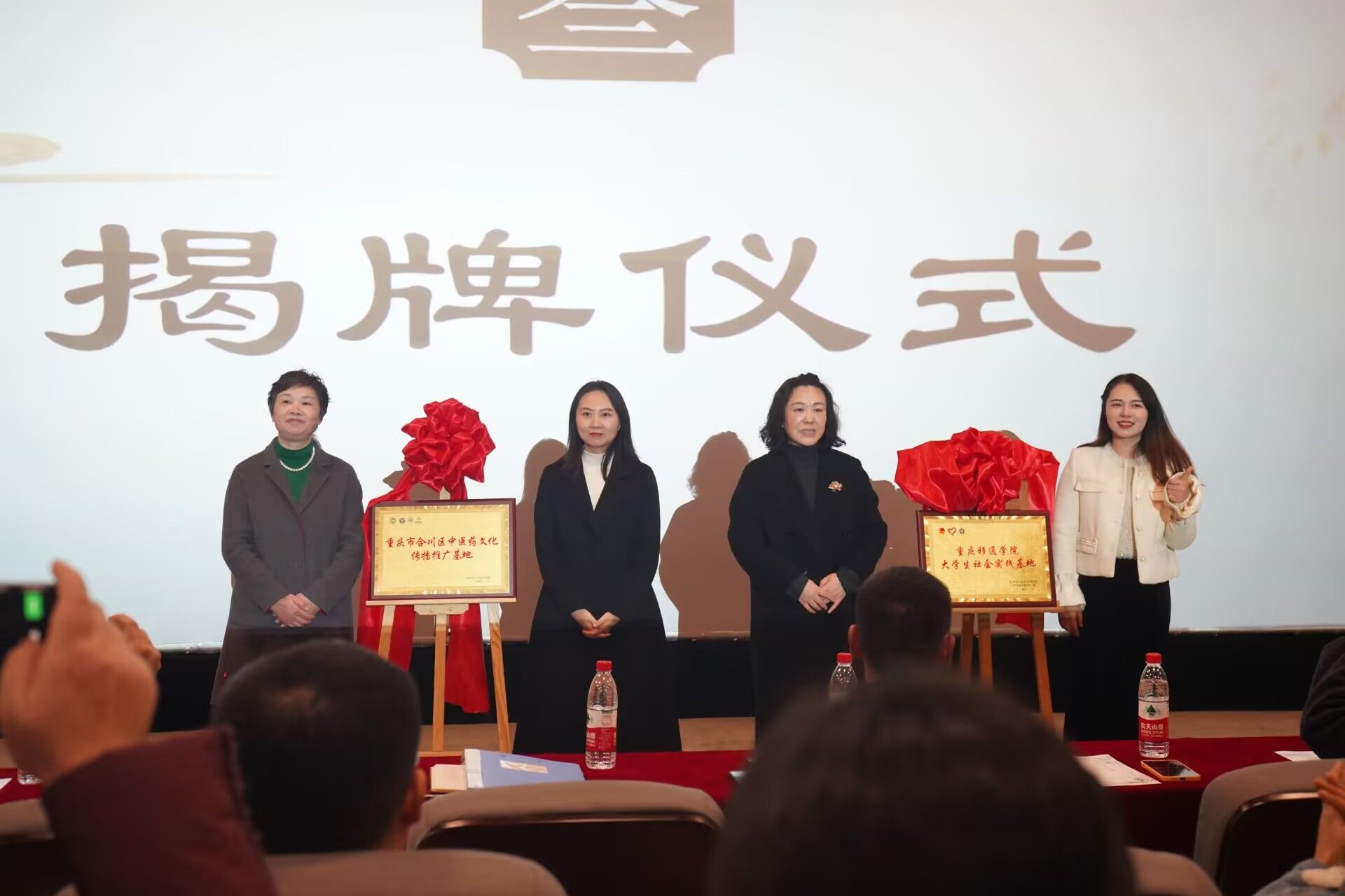 由重庆市合川区中医院党委副书记、院长喻其敏、艺术传媒学院学工副院长郭菲共同为重庆市合川区中医药文化传播推广基地揭牌