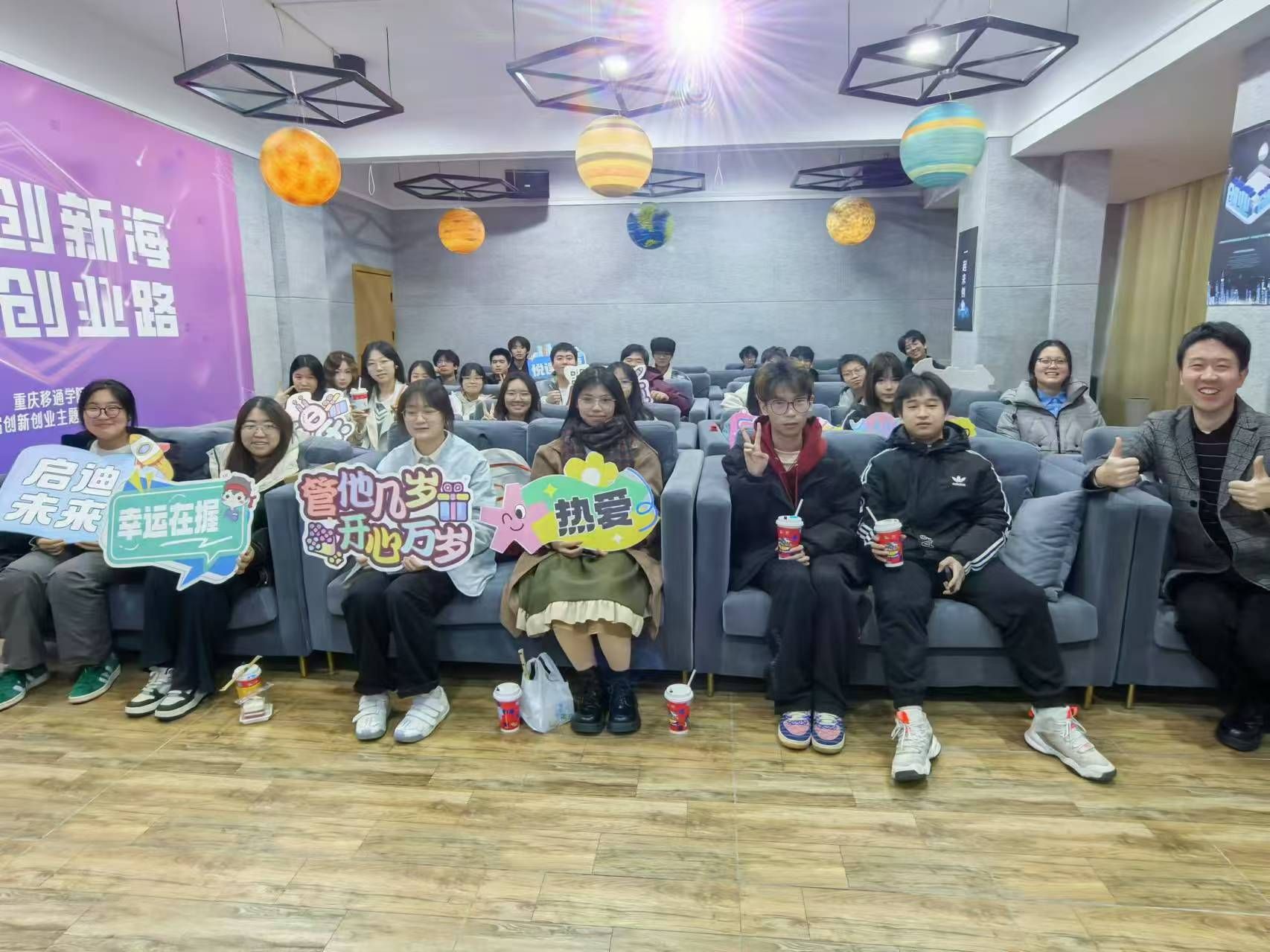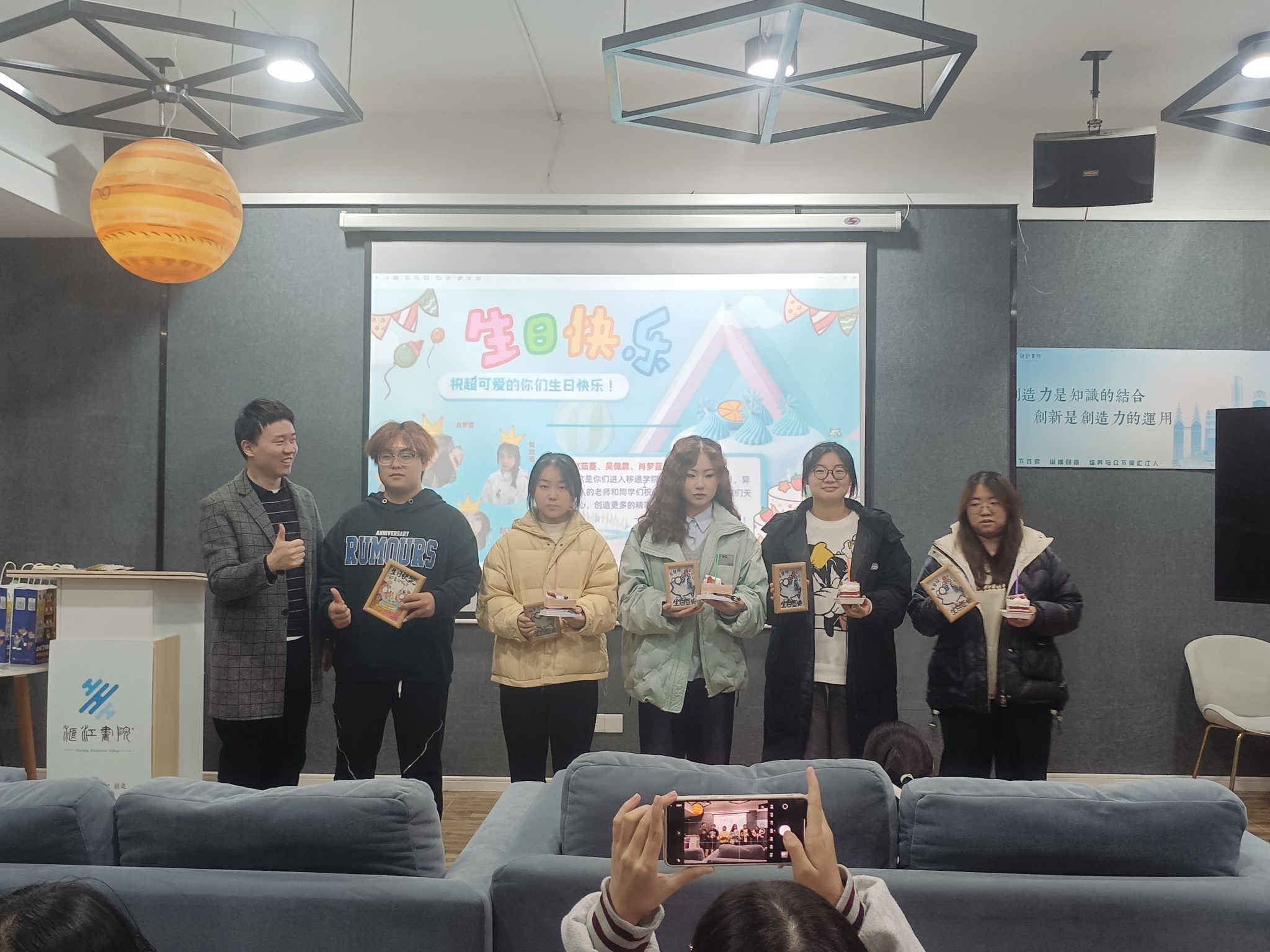 活动最后,杨成老师总结了本次活动的设计初衷,告知大家以后每个月都将为当月过生日的同学们举办一次集体生日会,形式选择可以由大家推荐。同时,杨成老师还告诉大家大学相对于高中更自由,鼓励大家以积极的态度迎接大学生活中的新变化,主动去探索和创新,去发现自己的兴趣特长,在学习和实践中找到自己的兴趣点和发展方向。希望大家在本次师生互动后,能够更加主动地展示自己,建立信任,开启大学四年异科师生互相启迪智慧、点燃梦想的起点。