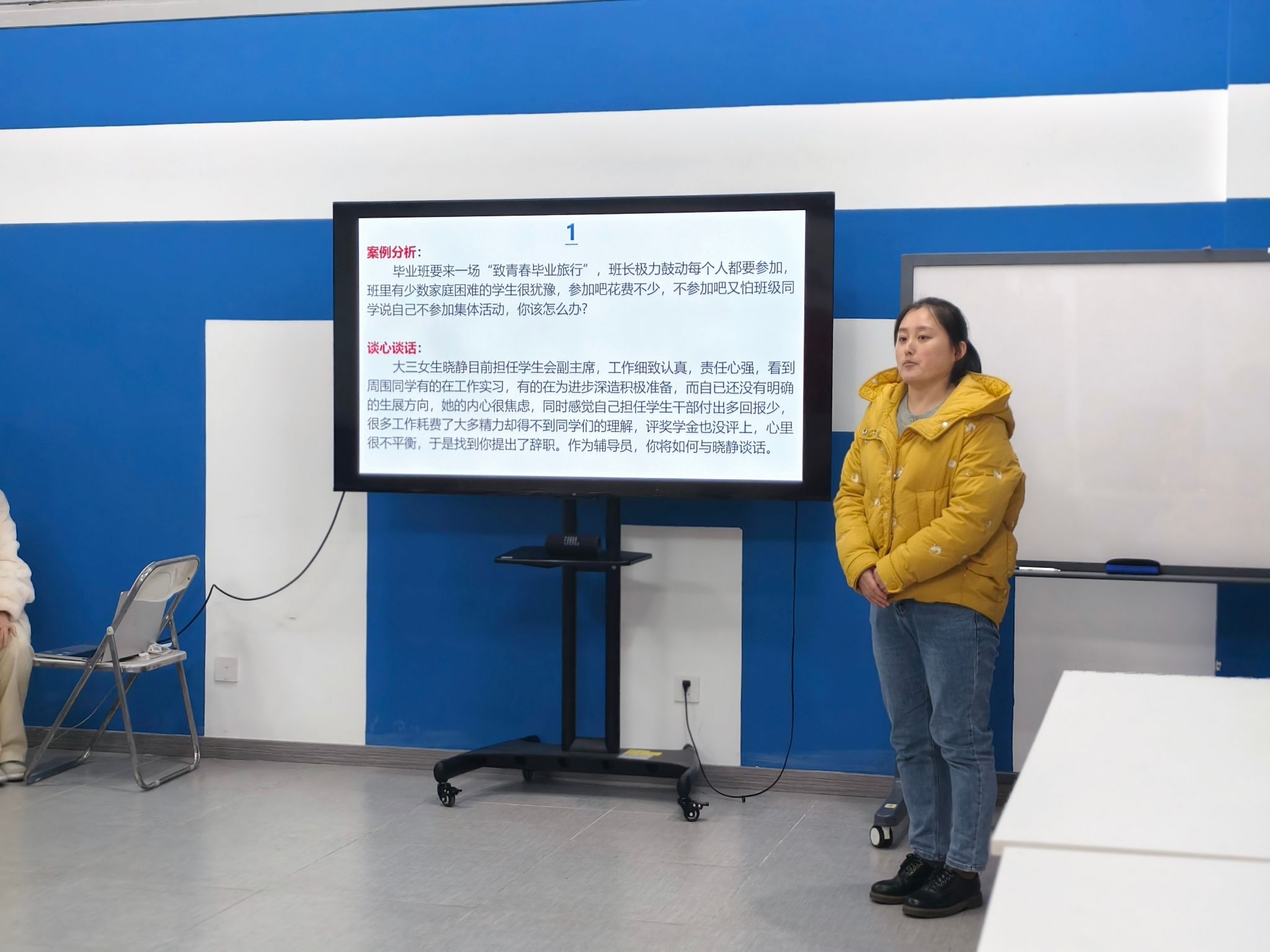 分析案例,辅导员们从题型定位、解决思路、具体实施与反馈三个层面剖析问题,就具体问题展开回答,深入浅出的展现了危机事件应对能力、事务工作解决方法。