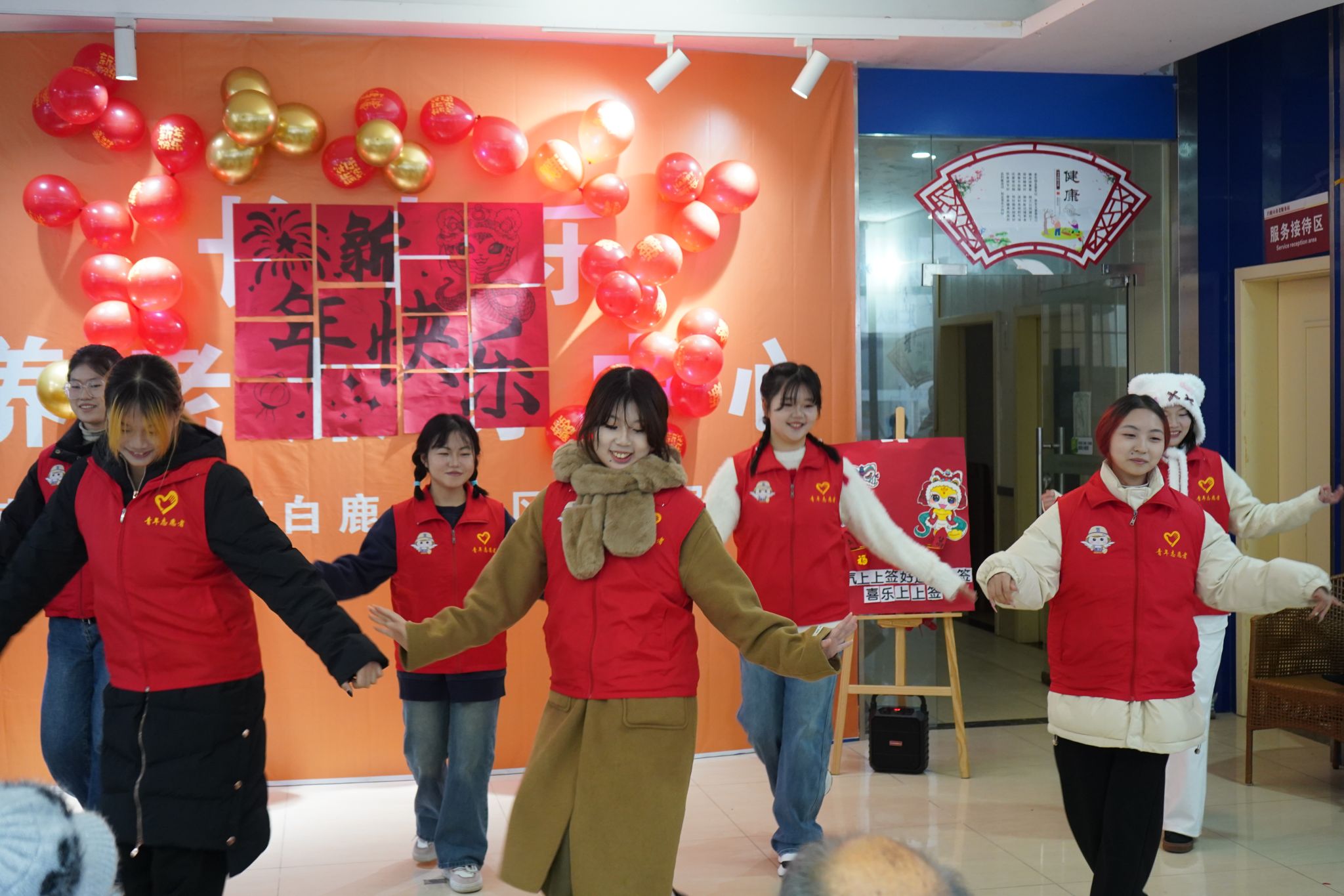 2024年12月15日14时,在元旦佳节即将来临之际,艺术传媒学院21132412团支部联合艺术传媒学院青年志愿者协会暖夕阳志愿服务专项支队在重庆市合川区长者乐养老服务中心热烈举行了一场温馨而欢快的庆祝活动,为老人们送上了一场充满欢乐与关怀的视听盛宴,也带来了新年的美好祝福。