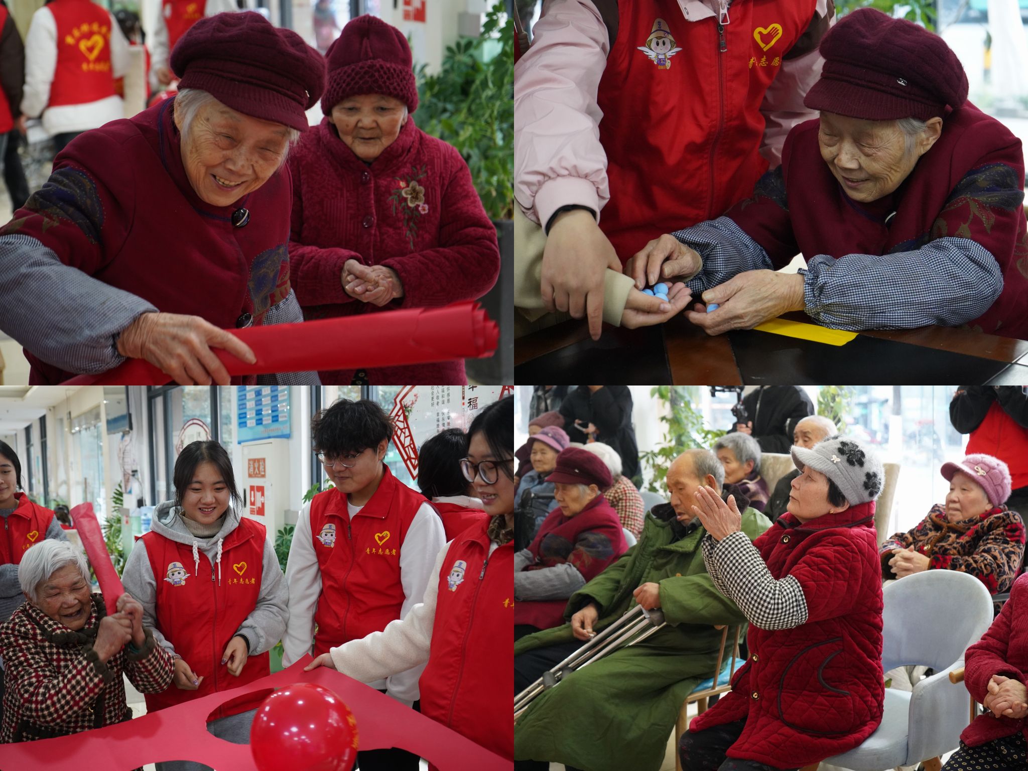 在活动期间,团支部成员始终留意着每一位老人。一旦发现有老人难以参与小游戏,便会主动上前,轻声慢语地将老人引领至创意照区。在这里,老人们兴致勃勃地摆出各种俏皮、可爱的姿势,团员们则迅速按下快门,捕捉那一个个充满欢乐与温情的画面,将美好瞬间定格为永恒的回忆。老人们看着相机里自己开心的模样,笑得合不拢嘴。这些照片展示着老人们丰富多彩的生活状态和积极乐观的精神风貌。
