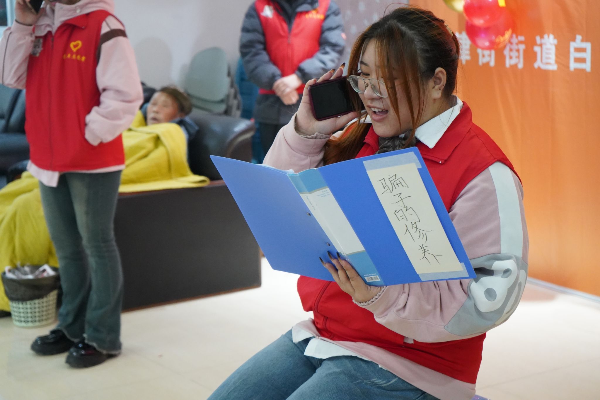 合唱《桃花朵朵开》率先登场,欢快的旋律瞬间点燃了现场气氛,团支部成员用歌声描绘出一片烂漫桃花盛景。紧接着,反诈小品《一墙之隔》上演,让老人们深刻认识到诈骗的危害。合唱《一路生花》轻快悠扬,赢得了老人们的阵阵掌声。团支部成员用温暖的歌声传递着对生活的热爱和对未来的憧憬,也让老人们在歌声中感受到生活的绚烂多彩,如同那一路绽放的繁花,给予他们心灵的慰藉。