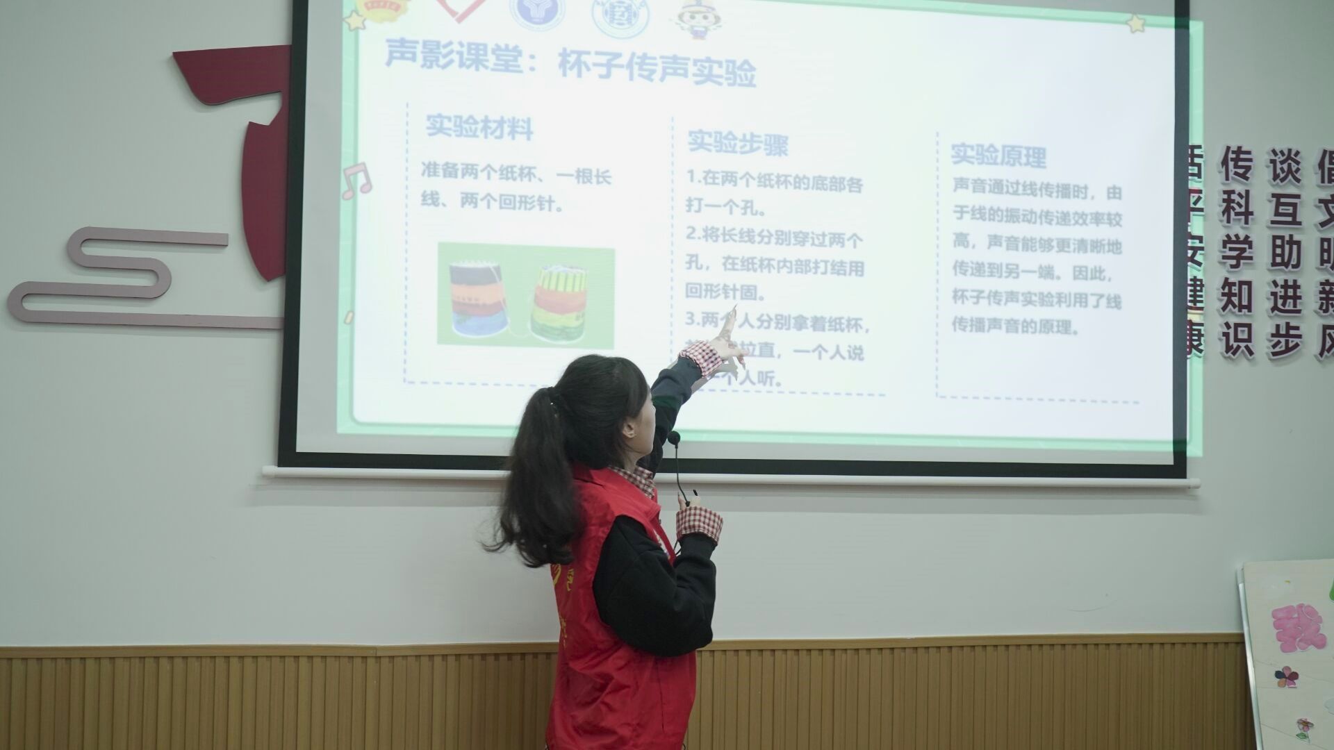 儿童时代梦科学,心怀科学耀四方。志愿者小老师以“PPT+视频”穿插的方式绘声绘色的为小朋友们讲诉科学的神秘,开始便吸引起小朋友的注意力。通过做手工式的科学实验,让小朋友们“玩”转科学,制作传声话筒感受声音的震动,用纸杯投影和消失的星星体验光的奇妙,在愤怒的气球实验下感受化学反应的神奇。这些实验不仅丰富了小朋友的知识库,还加强了小朋友们对科学的兴趣。活动最后,小朋友们在小老师的公平评选下获得了相应的奖品,他们的溢于言表,笑声如甜美的旋律,洋溢着幸福和欢快。