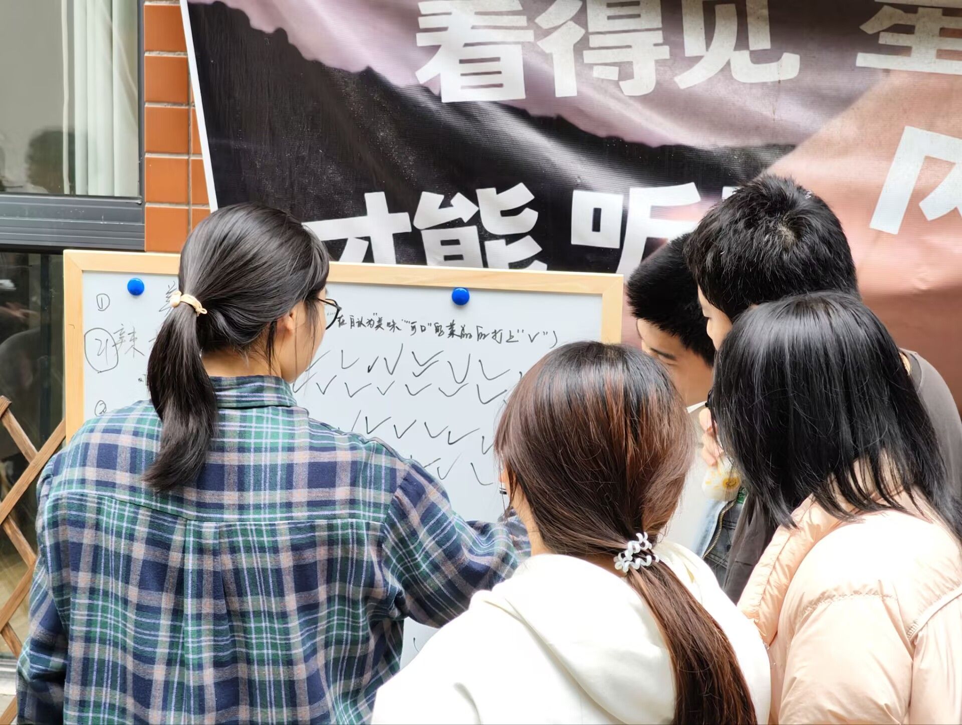 人间有味是清欢,美食相碰韵万般。小游戏“美食对对碰”率先亮相,参赛人员以四个人为一组,共有三十秒的记忆时间,用时短者获胜。规则一宣布,瞬间点燃现场气氛,同学们目光聚焦,热情高涨,全身心的投入到本场比赛中,大家迅速的在摆满美食小卡片的长桌上搜寻着配对食材。随着游戏的推进,各组竞争愈发激烈,当规定时间结束,最终抉择出优胜组,获胜的小组收获精美奖品。参加活动的同学在赛后分享在参赛时激动紧张的心情,表示在游戏过程中,大家相互协作不仅加深了彼此的情谊,还锻炼了反应能力。这场美食对对碰,无疑为活动拉开精彩序幕,让同学们在欢乐竞赛中感受团队协作与思维碰撞的魅力。
