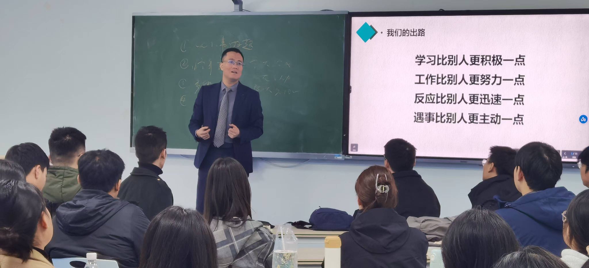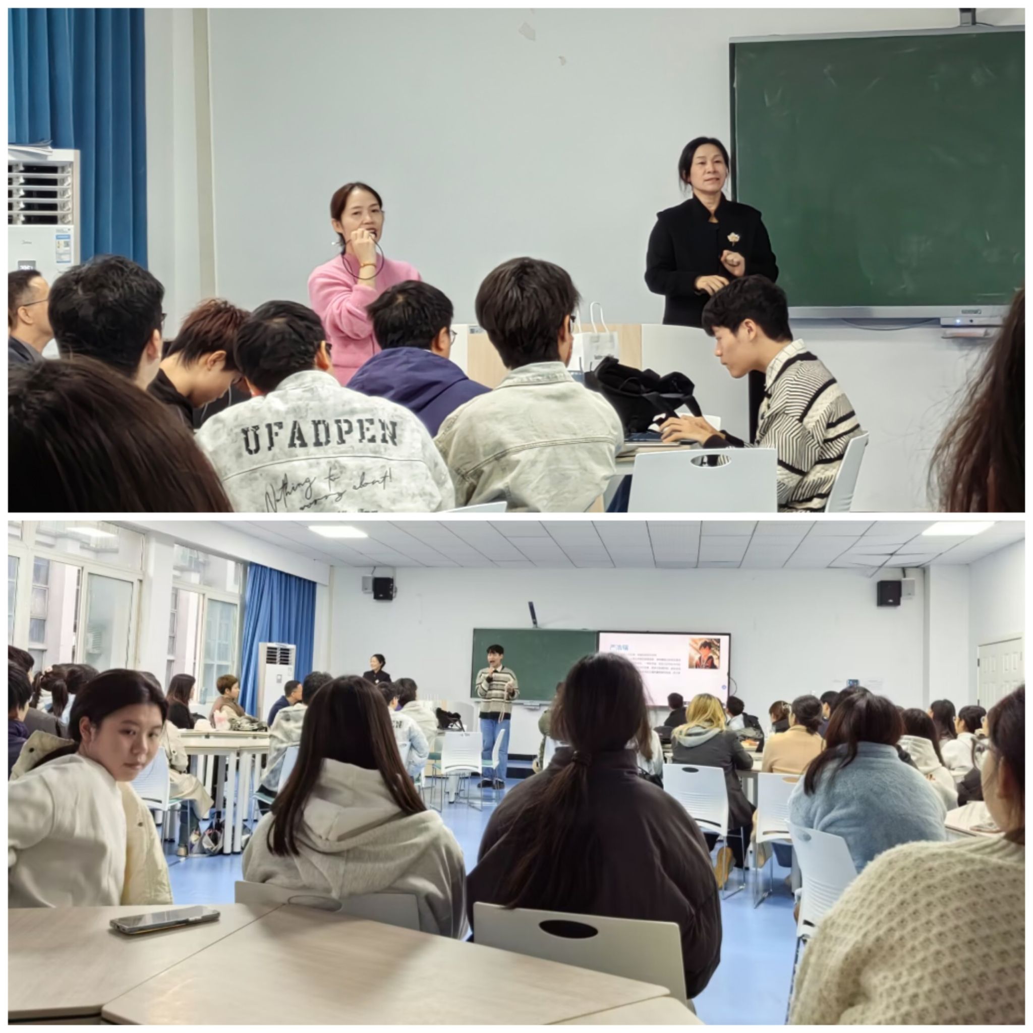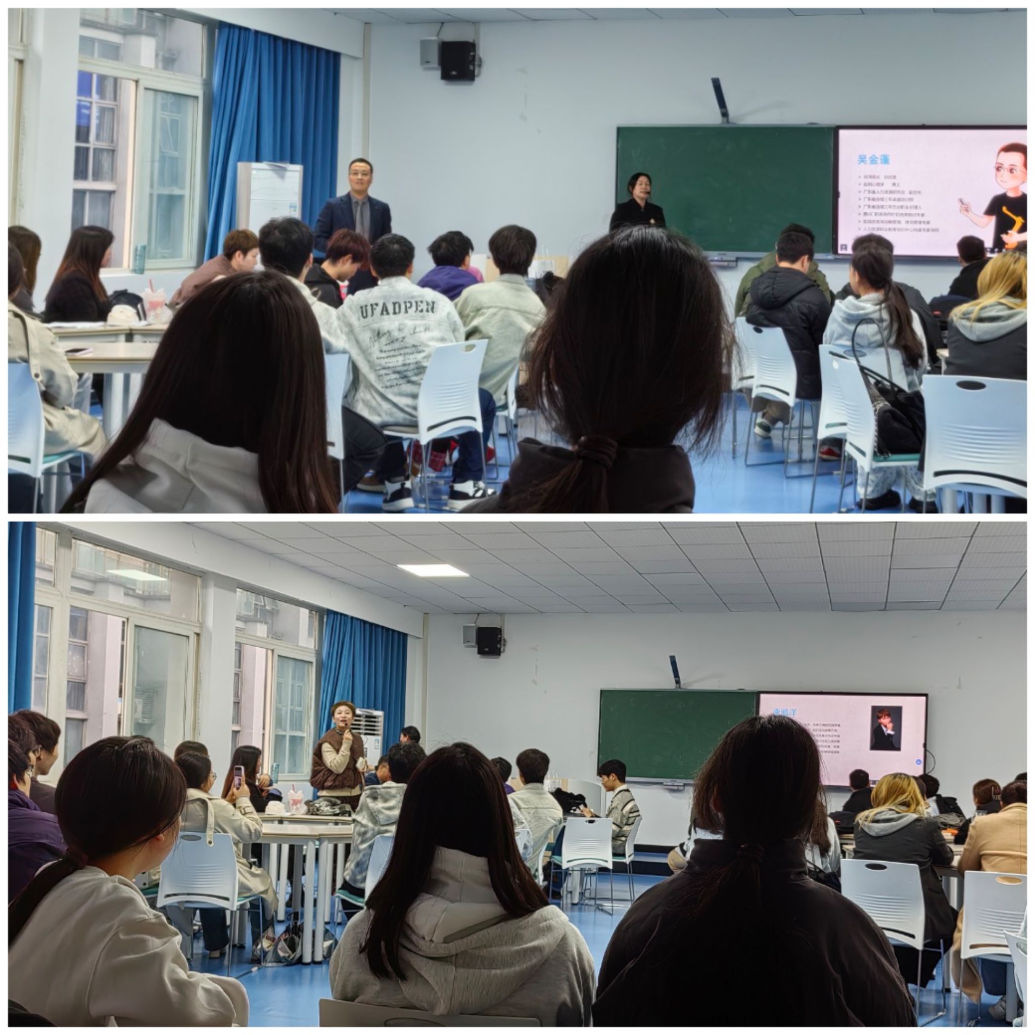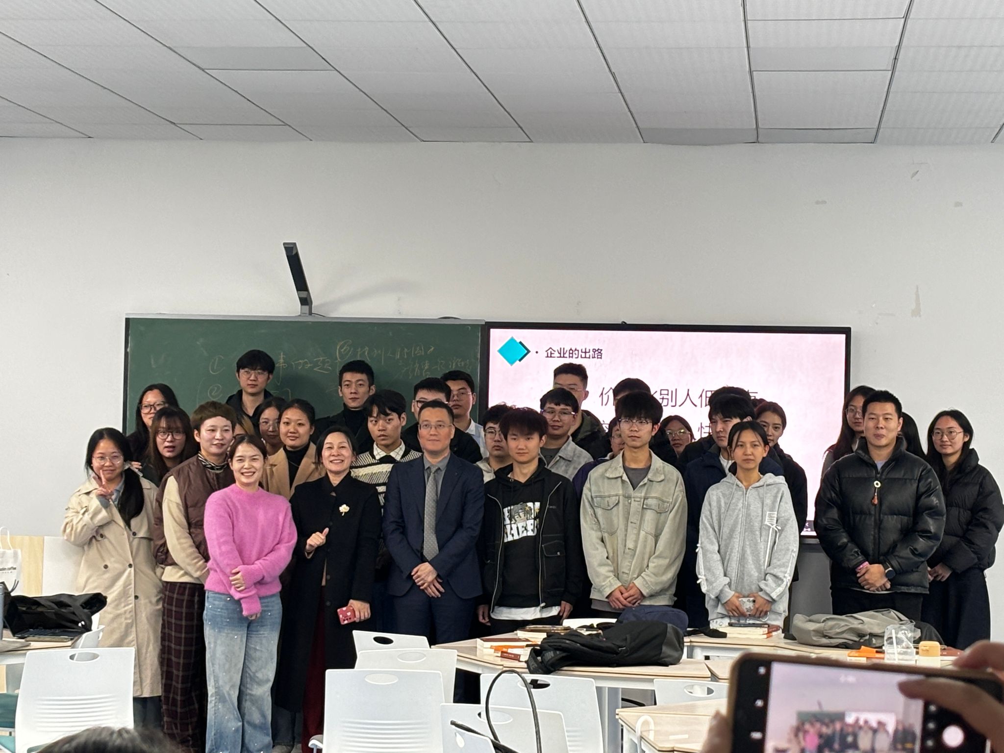 11月21日,来自新商科教学部的全生异科导师杨华琼、新商科教学部严浩瑞,淬炼商学院漆颖、李鸥洋、马碧红、杨瑶等老师,在5202教室共同筹办“职场跃升秘籍之以职场生存为鉴,探索技巧与心态的双重提升”的职场感召赋能活动。此次邀请华鸿集团总经理吴金蓬先生,以个人职业生涯发展为蓝本,为《数智化企业的人力资源管理》课程、艺术传媒学院、通信与信息工程学院的异科学生们从学业与职业规划、职场跃升等问题与学生进行面对面交流访谈。