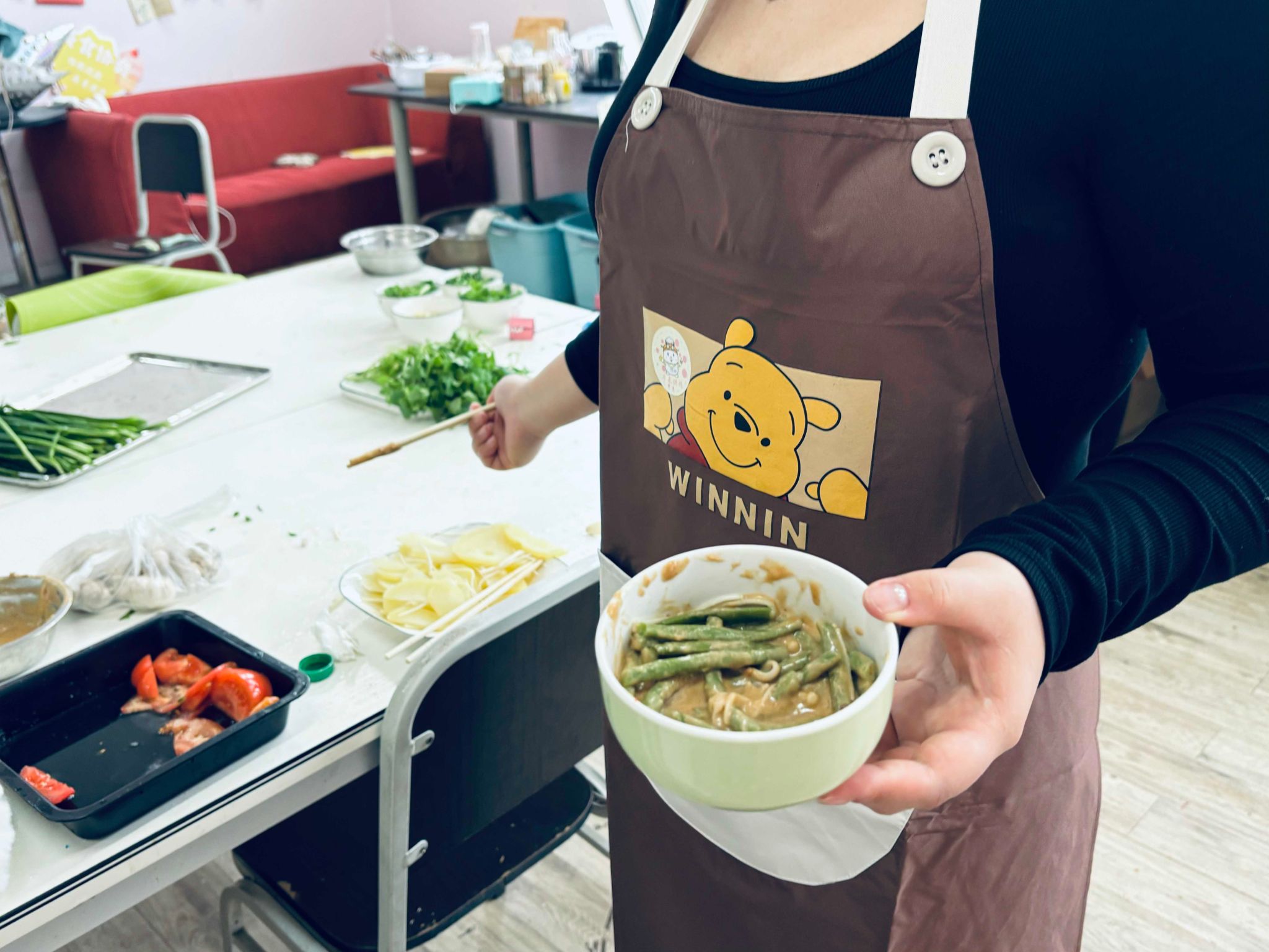 当一位来自北方的同学将白糖洒在黄瓜上,重庆的同学们表示疑惑。原来在北方,黄瓜蘸白糖会比较常见。北方人性格直爽,这种简单又美味的吃法很符合他们的饮食习惯。我们还了解到北方的白糖是绵白糖,南方则是白砂糖,又涨知识了。而麻酱拌凉菜,无疑是凉拌菜中的经典之作;西红柿蘸白糖,更是舌尖上的甜蜜邂逅。这不仅仅是简单的调料混合,更是同学们友谊合作的结晶,每一次搅拌都凝聚着他们对美食共同的热爱与期待。
