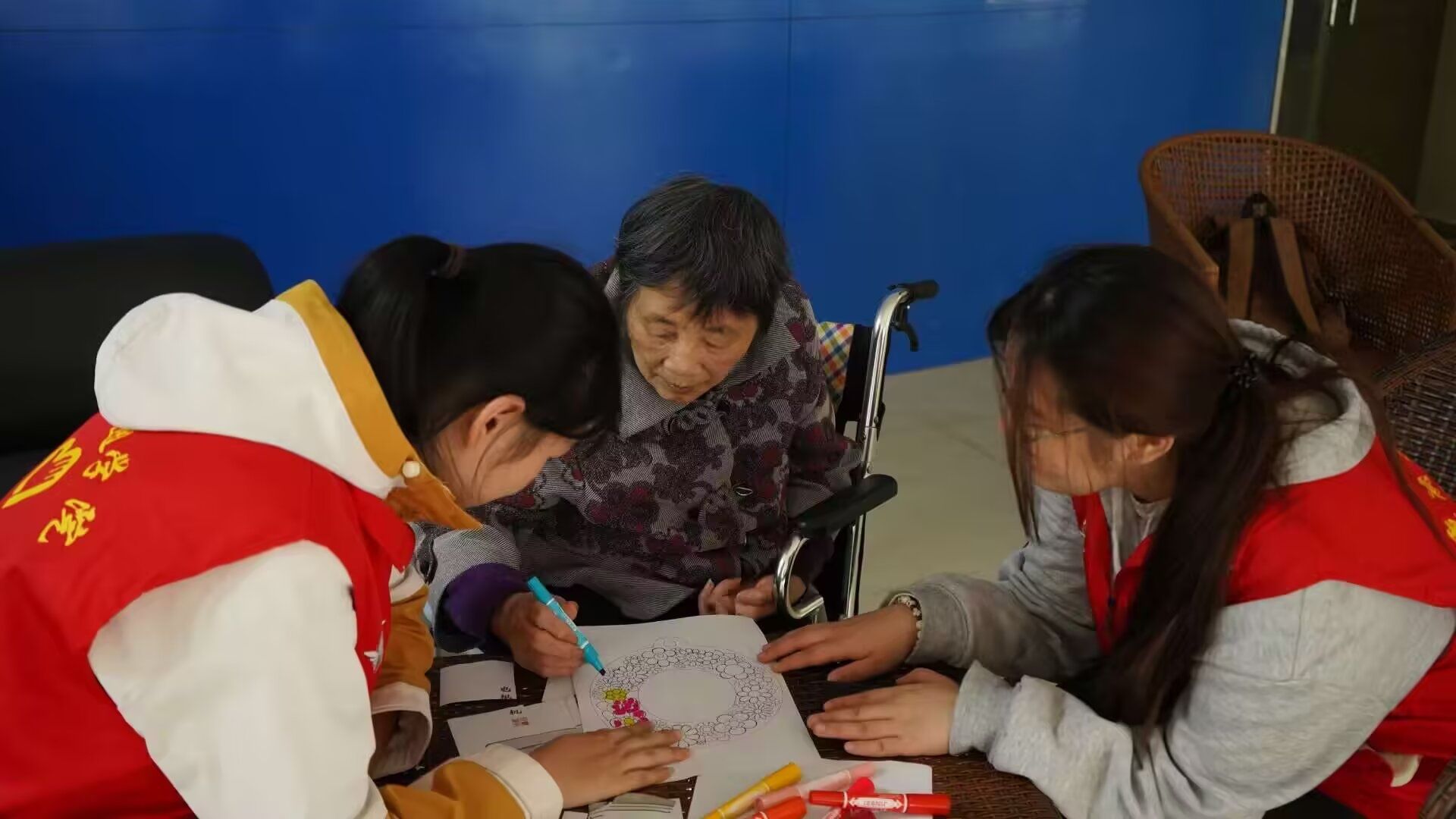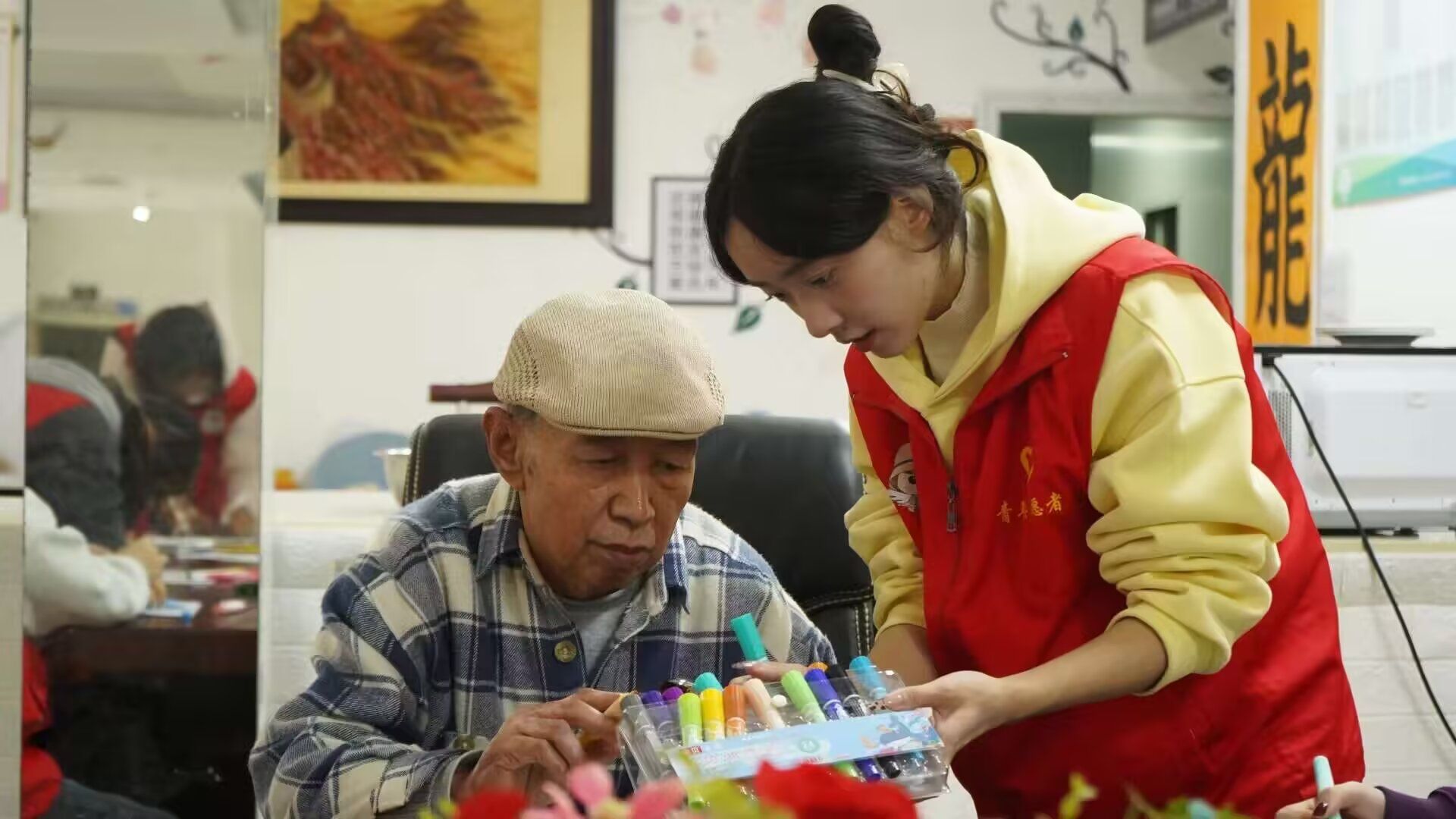 色彩缤纷,老人之望。志愿者们与老人们围坐在养老院里的桌子旁,共同为一幅幅图画填上鲜艳的颜色。志愿者们在一旁与老人们轻声交流着色彩的搭配。在这个过程中,老人们和志愿者们沉浸在色彩的世界里,他们用画笔传递着温暖,用色彩表达着对生活的热爱。当一幅幅色彩斑斓的图画完成时,老人与志愿者拿着他们的作品一起合照。这些图画不仅是他们的创作成果,更是他们与志愿者们之间深厚情谊的见证,为养老院带来了无限的生机与活力。