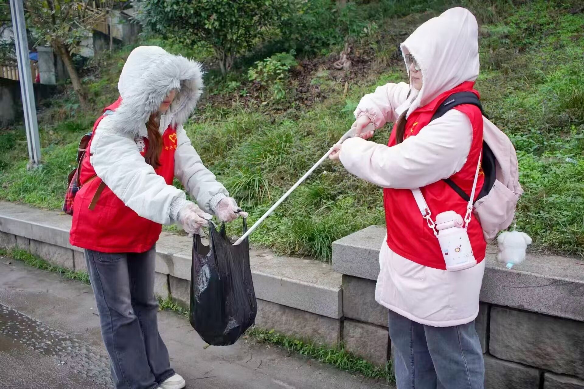 为了提高公众环保意识,推动垃圾分类的普及与实施。2024年11月19日16:00,重庆移通学院艺术传媒学院网络与新媒体3班携手青年志愿者协会在重庆合川区涪滨路成功举行了一场以“守护蓝天碧水,共创美丽家园”为主题的完满超级团支部活动。