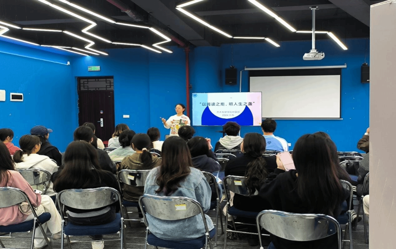 卡尔·塞根曾言“书籍是人类思想的宝库,阅读是开启这个宝库之门的钥匙”为更好的培养同学们的阅读兴趣。2024 年 11 月 15 日,艺术传媒学院学生会外联部在天空书院揽江厅师生交流室开展 “以阅读之炬,明人生之盏” 大咖阅读活动,由孟易老师为同学们解读大咖阅读的乐趣体验。