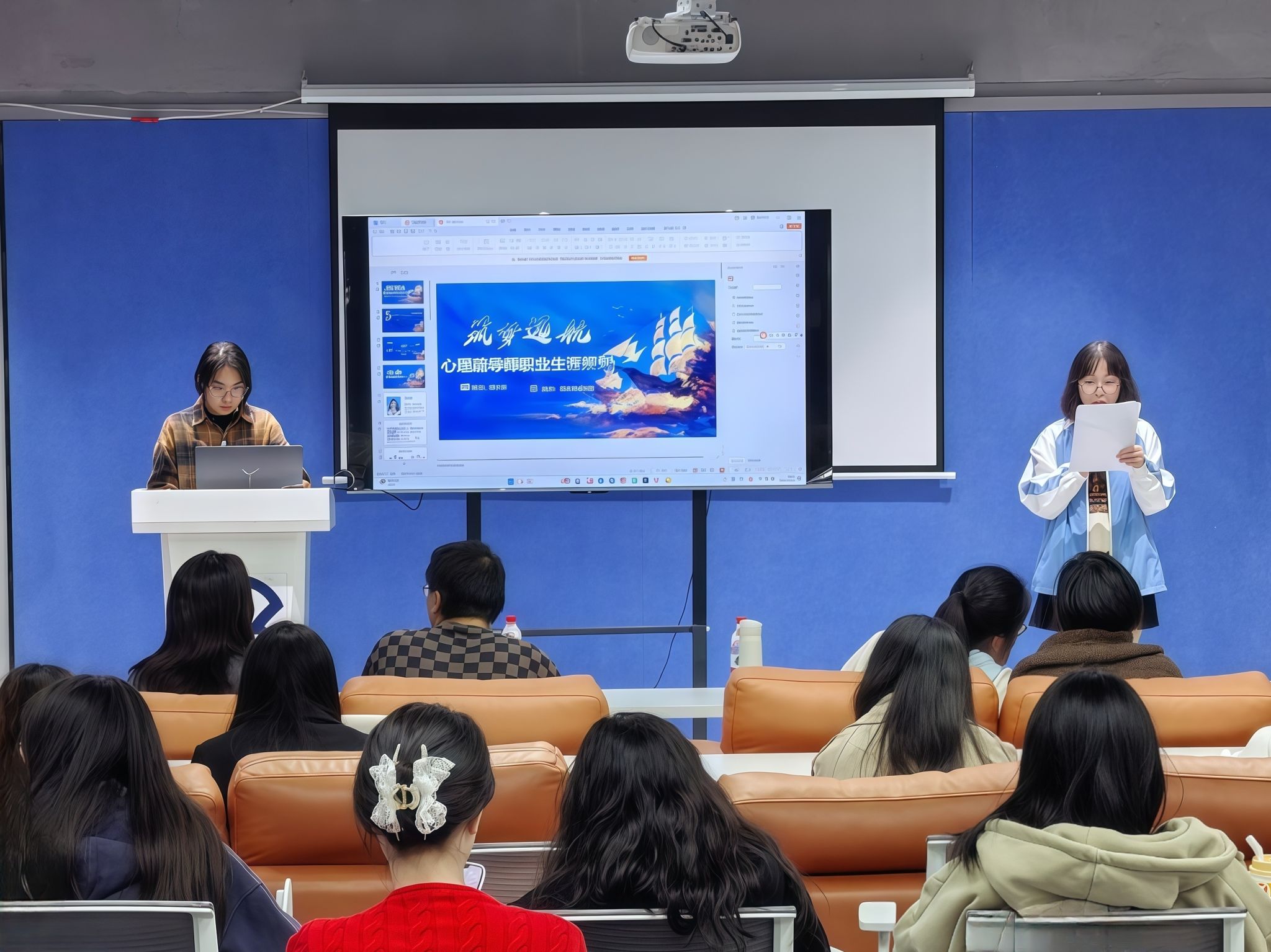 经过前期的自主申报,共有36名选手积极报名参与了此次职业规划大赛。经过严格的材料评审环节,14名同学凭借出色的表现脱颖而出,成功入围成长赛道院级赛的终选阶段。在比赛现场,他们以饱满的热情和专业的素养,通过精彩纷呈的演讲,充分展示了各自的目标职业、对行业的深入分析以及为实现职业目标所制定的一系列详细计划。每位选手的演讲都充满了激情与梦想,展现了他们对于未来职业生涯的无限憧憬与坚定决心。经材料评审等环节,14名同学脱颖而出,入围院级赛终选阶段。成长赛道比赛现场,各选手同台竞技。以饱满的热情和专业的素养,通过精彩的演讲,展示了他们的目标职业,以及为目标职业定制的一系列计划和行业的就业分析。进一步彰显了我院学子对职业发展路径的明辩能力,同时也体现出了他们对未来职业生涯的深刻理解。