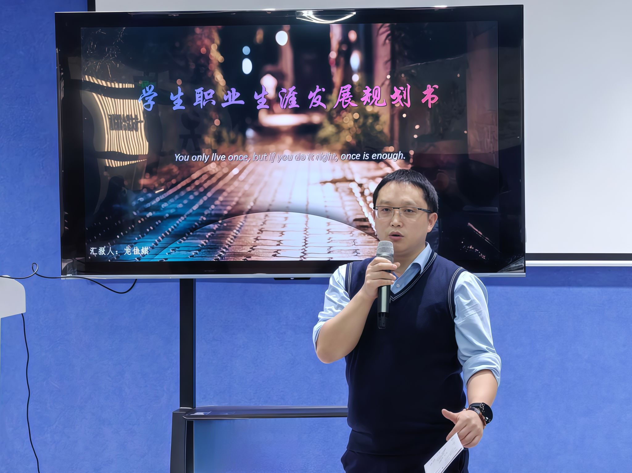 卢伯年老师对本次职业规划大赛进行了点评。他强调职业规划中明确目标的重要性,它能为我们指明方向,减少迷茫。同时,人职匹配也至关重要,找到与个人兴趣、能力相匹配的职业岗位,才能充分发挥潜力,实现个人价值。同时提醒同学们在职业规划展示中要注重PPT制作的细节,包括色调和排版设计,以提升展示效果。