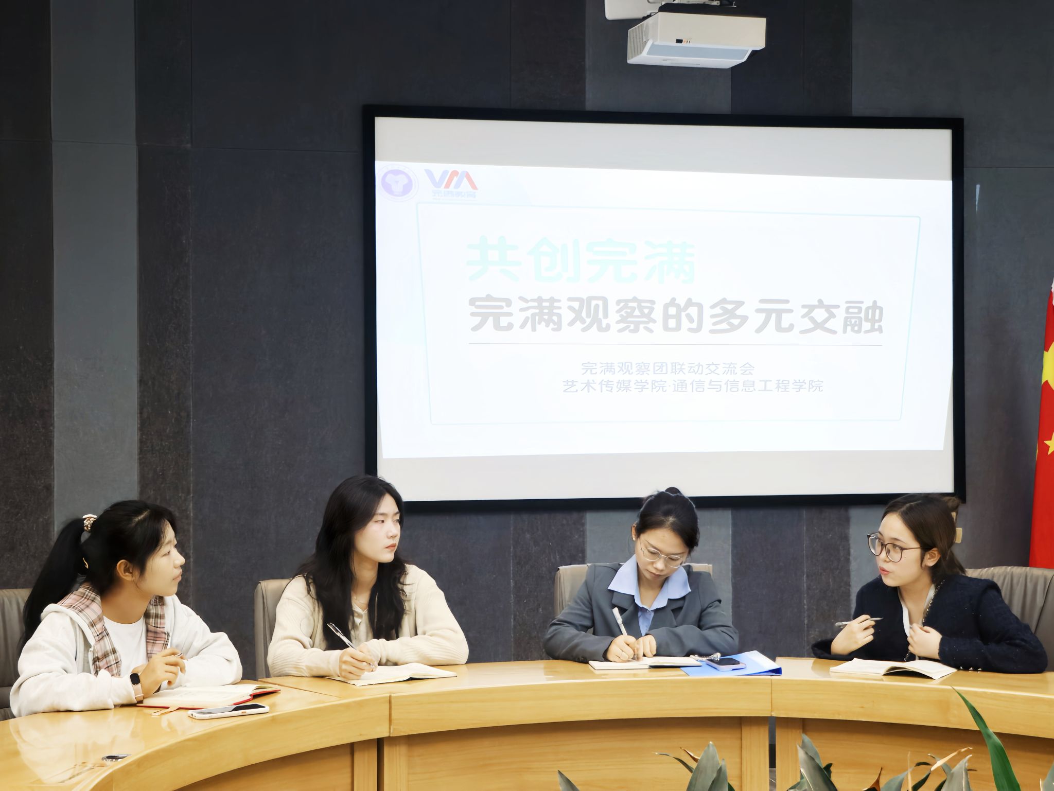 为了共同提升观察活动的能力与效率,更好地推进完满观察团工作的展开,加强两院观察团之间的沟通与协作,艺术传媒学院完满观察团和通信与信息工程学院完满观察团特于2024年11月14日12:00在南湖书院圆桌会议厅开展以“共创完满,完满观察的多元交融”为主题的完满观察团双院交流会。本次交流会双方完满观察团成员进行提问、交流、总结,进一步有效提高完满教育活动师生的满意度、获得感,深化完满教育“第三只眼睛”的工作职能。