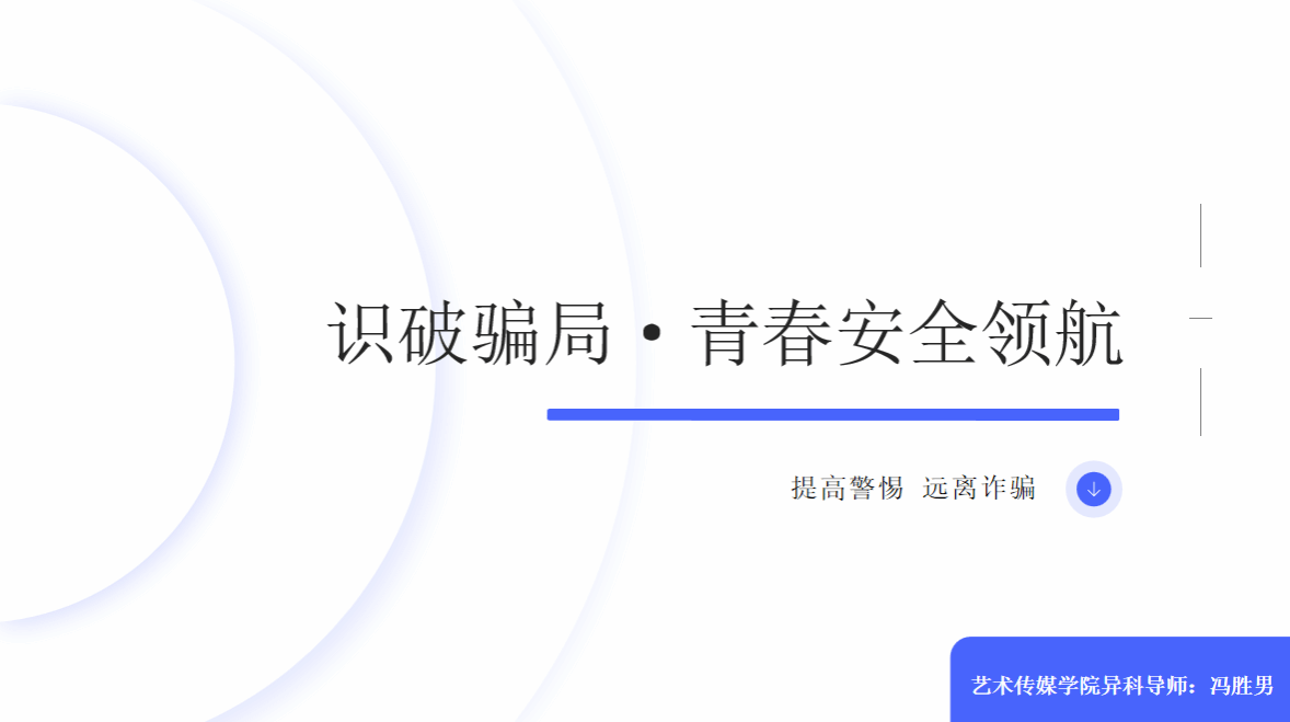 近日,针对合川地区电信诈骗案件频发的情况,为提高大学生的反诈意识和自我保护能力,2024年10月29日晚,冯胜男老师在鱼城书院的头脑风暴会议室为2023级数字媒体艺术6、7、8班的异科学生举办了一场别开生面的反诈宣传活动。活动以“识破骗局·青春安全领航”为主题,旨在通过生动的案例分享和实用的防骗技巧,帮助学生们认清诈骗的本质,远离诈骗陷阱。