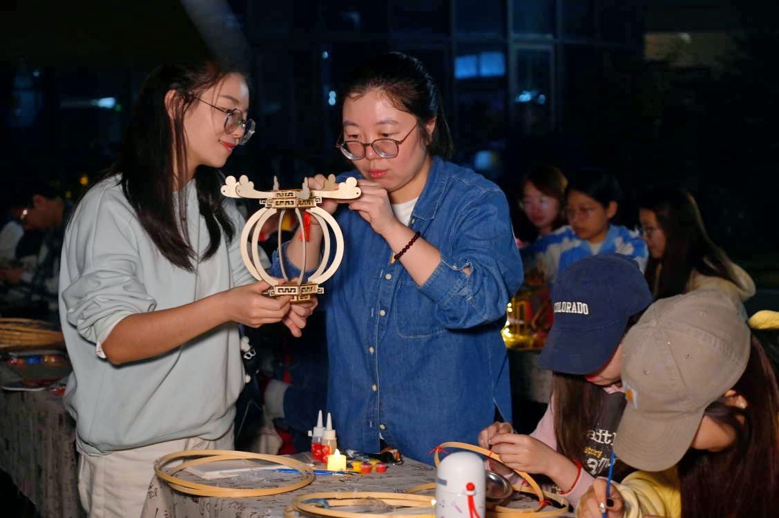 出席本次活动的嘉宾有:艺术传媒学院学工副院长郭菲老师、艺术传媒学院团总支书记姜璐老师,以及艺术传媒学院学生工作办公室的所有老师们。社团活动部指导教师吴红鑫老师为大家介绍本次活动,现场热情高涨。开幕式闭,同学们积极行动起来,用激情与活力,使灯笼逐渐成型,结合现代科技元素,赋予传统艺术“新”生命。
