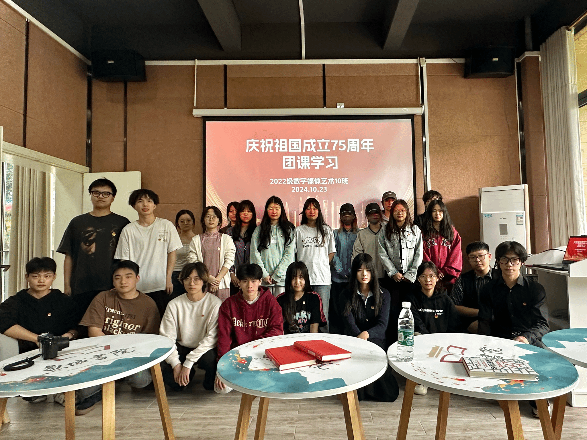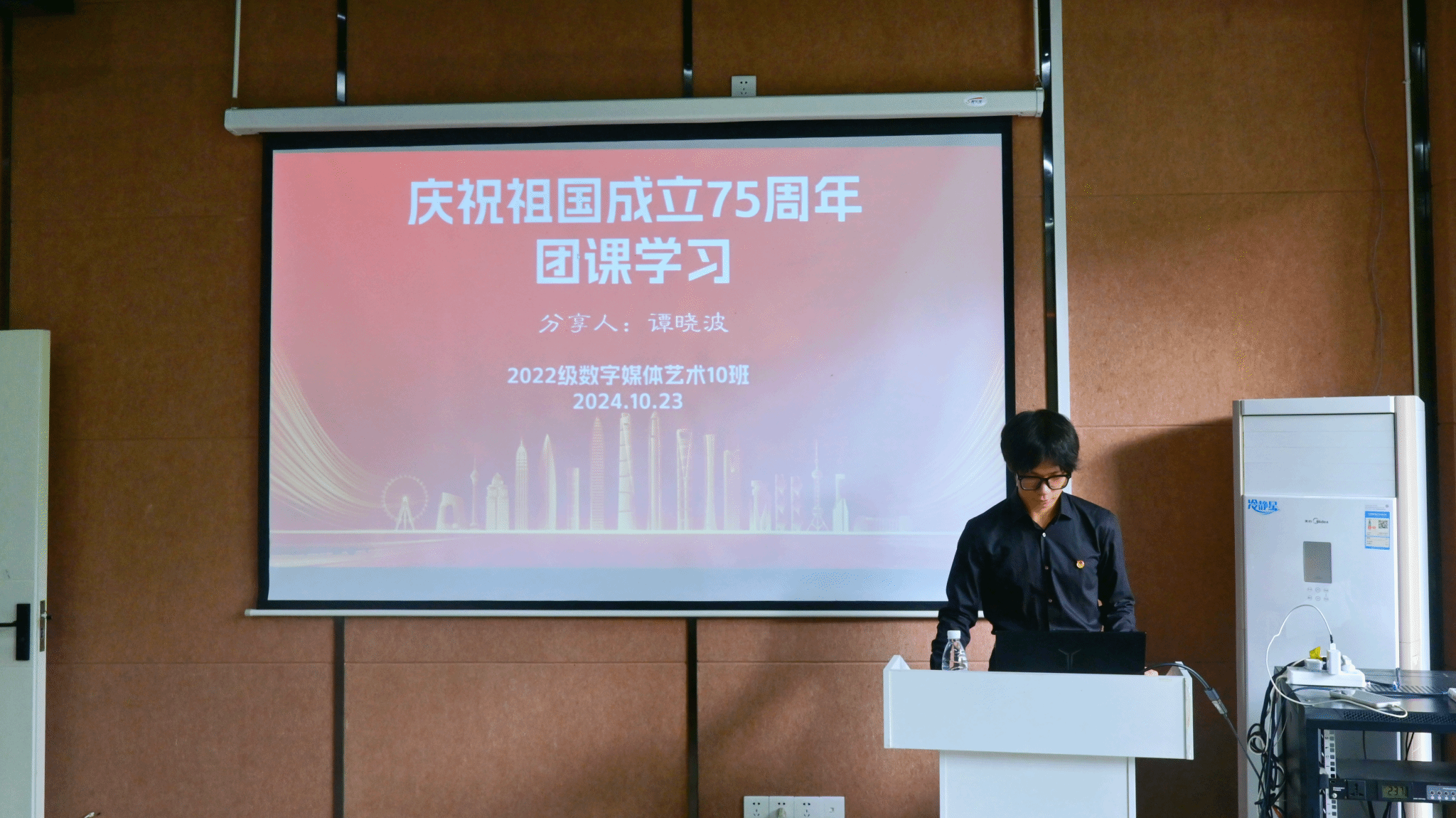为深入贯彻党的教育方针,加强爱国主义教育,引导团支部成员树立正确的价值观和人生观。10月25日13:00,在祖国75周年华诞之际,艺术传媒学院数字媒体艺术21132210团支部在鱼城书院空格影音室开展了以“庆祝中华人民共和国成立75周年”为主题的主题团课学习。本次主题团课由21132210团支部全体成员及异课导师肖娜老师共26人参与,团支书谭晓波主持并讲解本次团课主要内容。