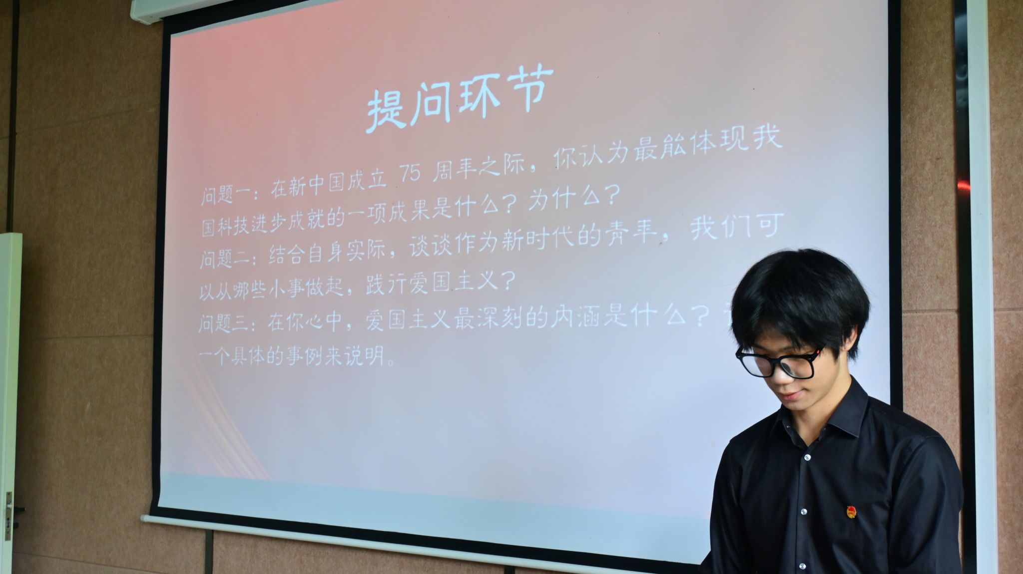 征途如虹,浩荡前行。在问答环节,团支书谭晓波向同学们提出了“如何践行爱国主义?”以及“爱国主义的深刻内涵?”等问题。同学们都踊跃表达自己的观点,梁佳佳同学表示要积极参与社会建设,关心社会发展,参与公益活动,为社会做出自己的一点贡献。李杨同学则表示在遵守法律法规时,还要弘扬中华文化,增强文化自信,提高自身素质,为国家的发展贡献自己的力量。